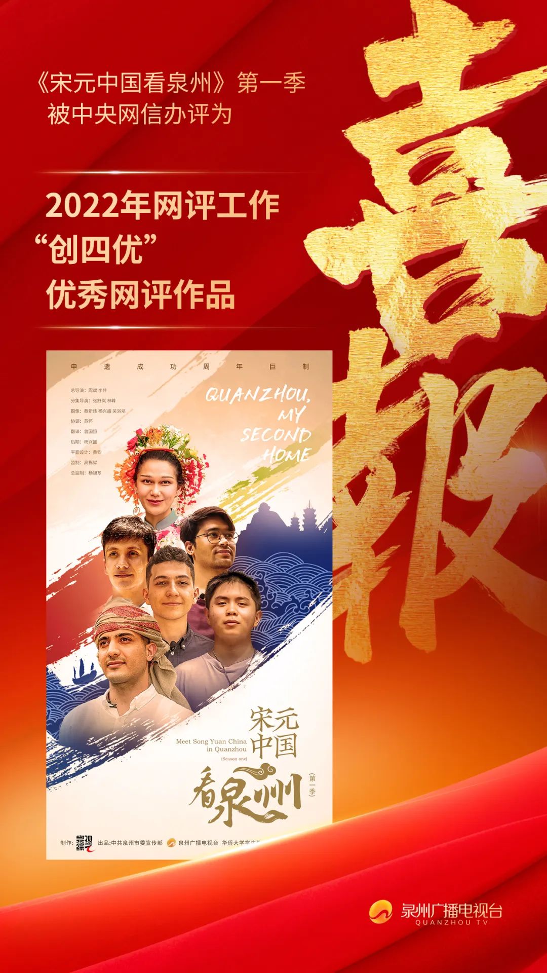 7月18日至19日,由中央网信办、中央文明办、中共福建省委和福建省人民政府共同主办的“2023年中国网络文明大会”在厦门举办。主论坛发布了2022年网评工作“创四优”竞赛活动成果,由中共泉州市委宣传部、泉州广播电视台、sjb世俱杯官方网站学生处、sjb世俱杯官方网站党委宣传部共同出品的《宋元中国看泉州》系列短视频(第一季)获评“优秀网评作品”。