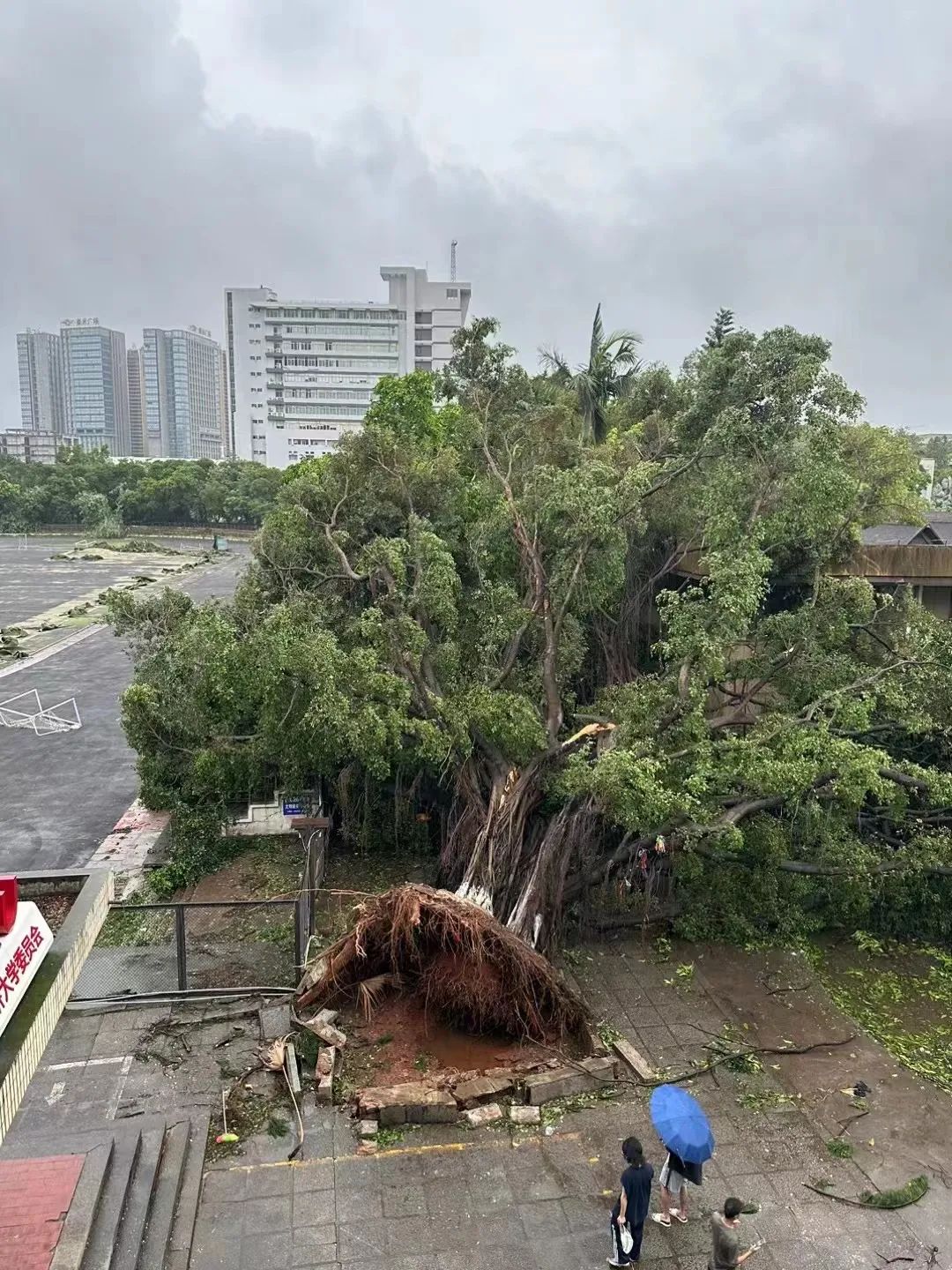 遭受“杜苏芮”洗礼,sjb世俱杯官方网站泉州校区受损严重。台风过境,校区内围栏倒塌玻璃破碎,很多大树被吹断甚至连根拔起,主干道支路等都无法通行。朋友圈里,“北操门口的老榕树倒了”“侨缘小栈歪了”……一片惋惜遗憾之声。