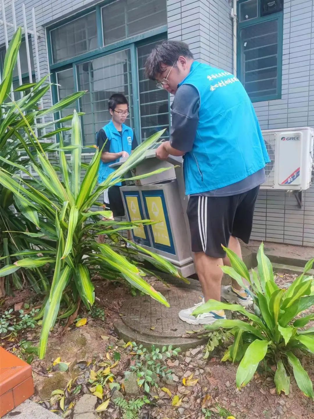36号楼203宿舍的学生党员朱高峰与楼栋志愿者们台风来袭前曾帮助离校宿舍同学收拾晾晒衣服、鞋子等物品,台风过境后又将各宿舍门前被吹乱的鞋子逐一恢复原位。10号楼栋自律会副主任、2021级政治与公共管理学院美国华侨学生高泓元因参加实习第一次暑期留校,和楼栋其他境外同学一起加入了灾后重建工作。“入学2年来最爱华园的花与树,看到它们连根拔起,真的很难过,希望能为华园救灾工作贡献一份微薄之力。”他说。