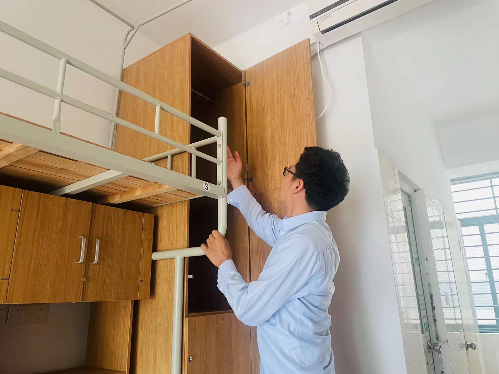同时,中心也积极做好宿舍设施设备维修保障和卫生保障工作,组织工作人员、住楼辅导员、管理员、学生干部对新生宿舍逐个进行排查和维修,对两校区约2000间新生宿舍进行精细化保洁,对楼梯走道等公共区域进行拉网式消杀,不留死角,努力为新生的宿舍生活保驾护航。此外,中心还充实住楼辅导员队伍,确保1-2栋楼配备1名住楼辅导员。