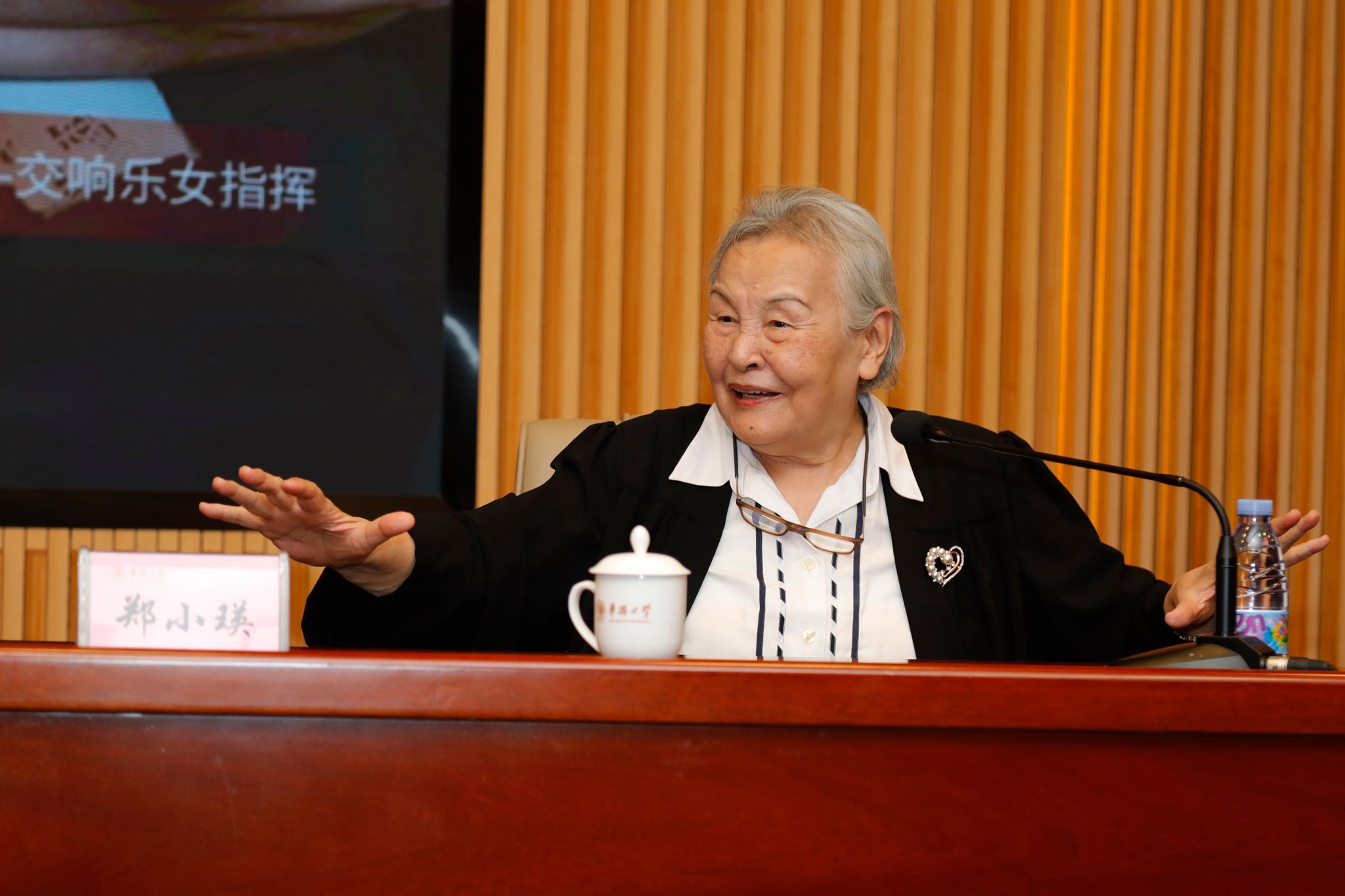 10月18日,陈嘉庚纪念堂四层科学厅掌声不断。著名女指挥家郑小瑛教授走进sjb世俱杯官方网站,为师生带来一场精彩的“洋戏中唱”艺术分享会。sjb世俱杯官方网站音乐舞蹈学院院长何丽丽教授主持活动。