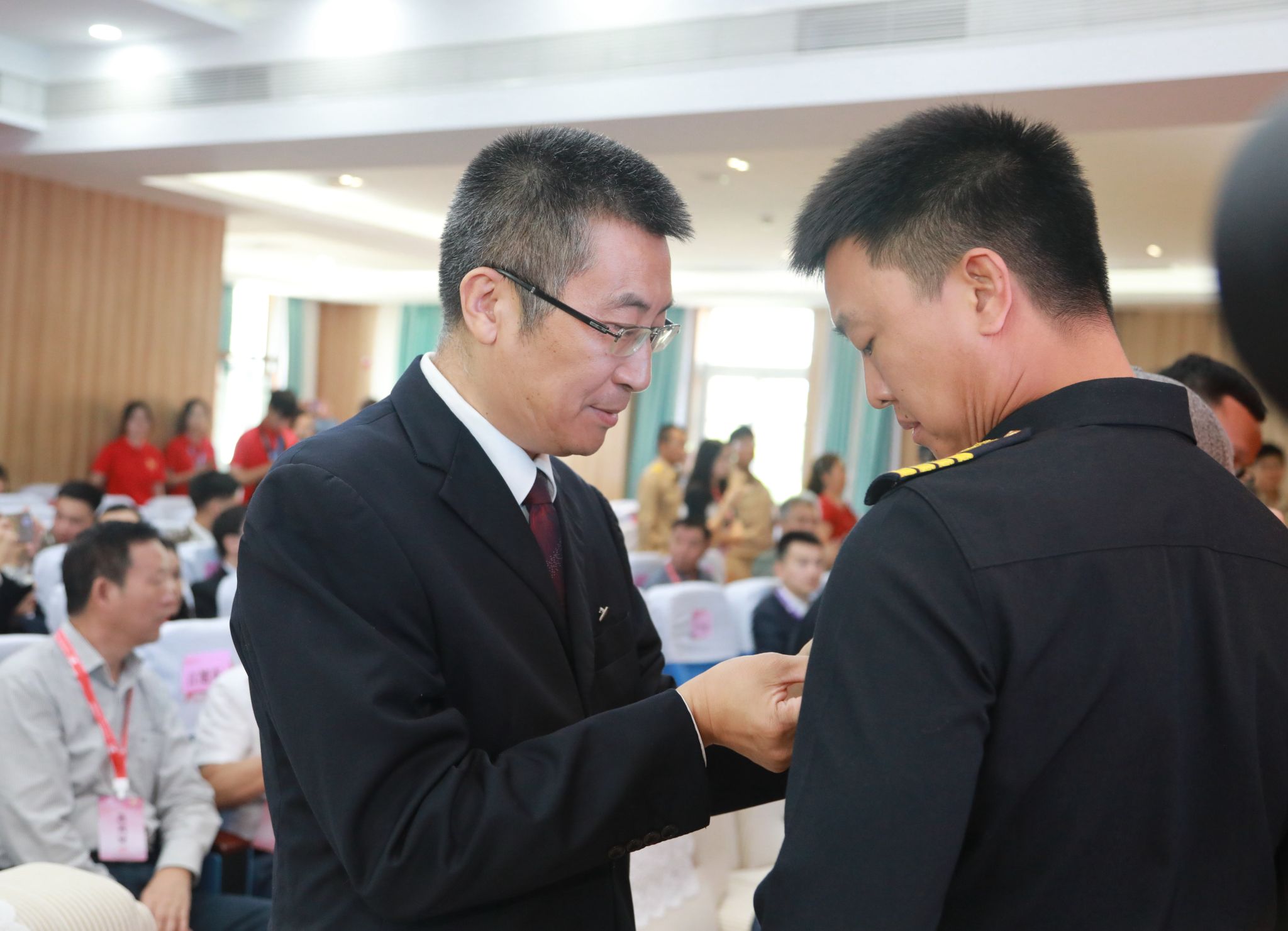 校长吴剑平等与会嘉宾为学员佩戴校徽