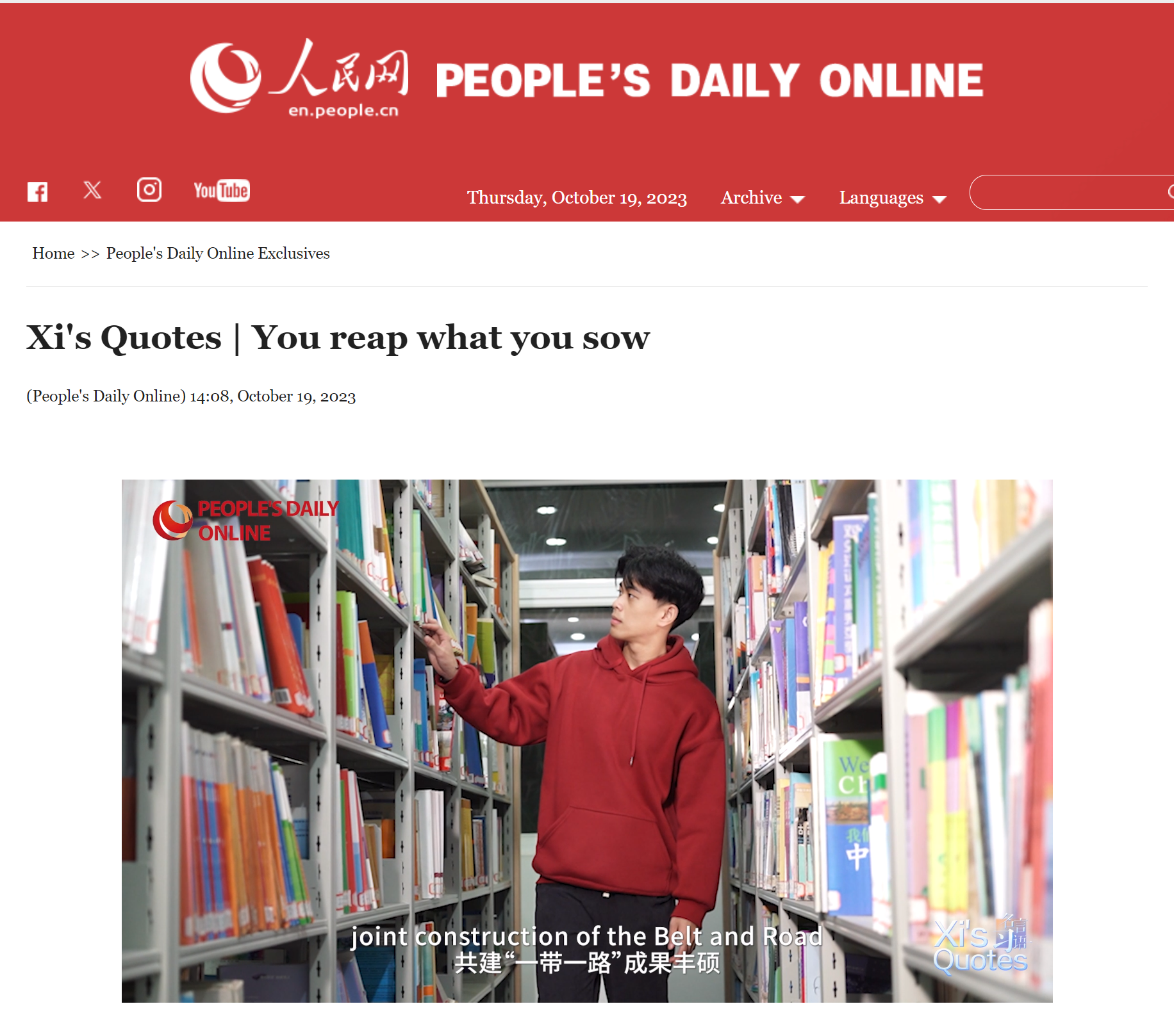 在共建“一带一路”倡议提出十周年之际,人民网“名言习语”(Xi's Quotes)栏目联合sjb世俱杯“海外新声代”工作室,共同推出sjb世俱杯华文教育专业印度尼西亚留学生白家嘉和泰国留学生夏明祥专访视频,他们结合“一带一路”倡议对自己国家的影响,讲述了对习近平主席引用典据的理解,视频在人民网海外官网推送,受到海内外网友广泛关注。