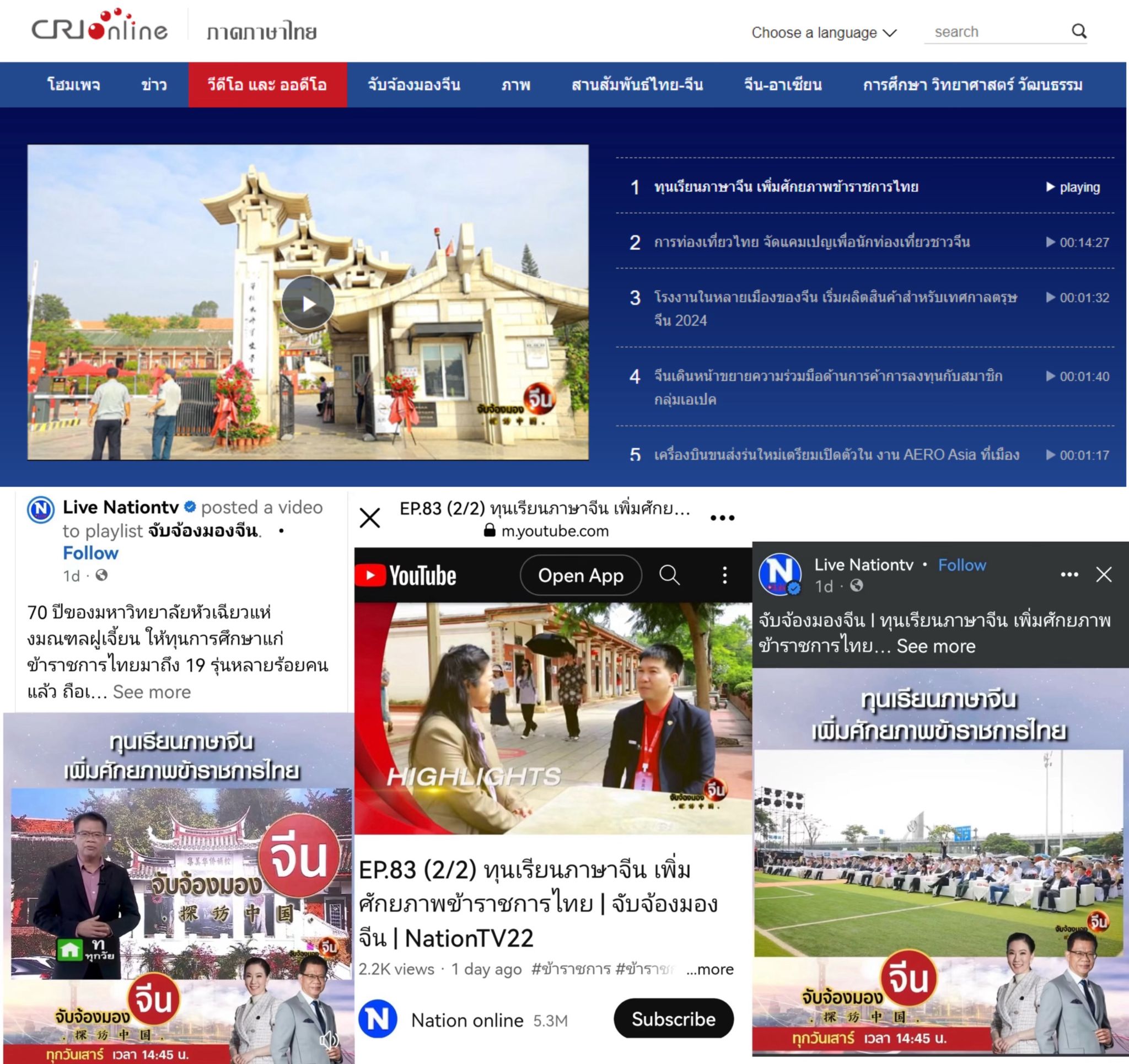 由sjb世俱杯党委宣传部/新闻中心协助中央广播电视总台摄制组拍摄的泰语电视纪录片《中国政府奖学金造福泰国政府官员》,11月18日在泰国民族电视台Nation TV的热播节目《探访中国》中播出,并通过中央广播电视总台泰语主页以及海外社交媒体平台优兔(YouTube)、脸书(FaceBook)等同期推送。