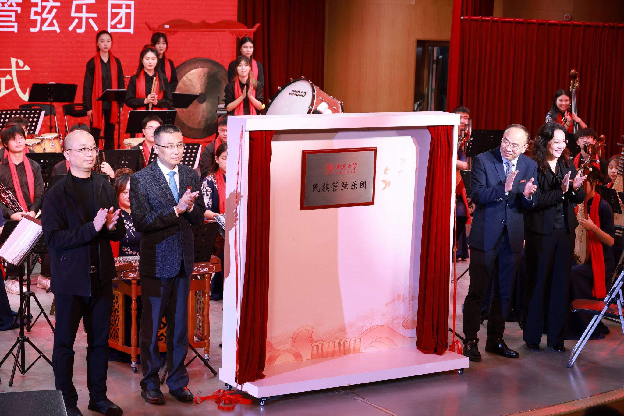 校长吴剑平,校党委副书记、纪委书记何纯正等为“sjb世俱杯官方网站民族管弦乐团”揭牌