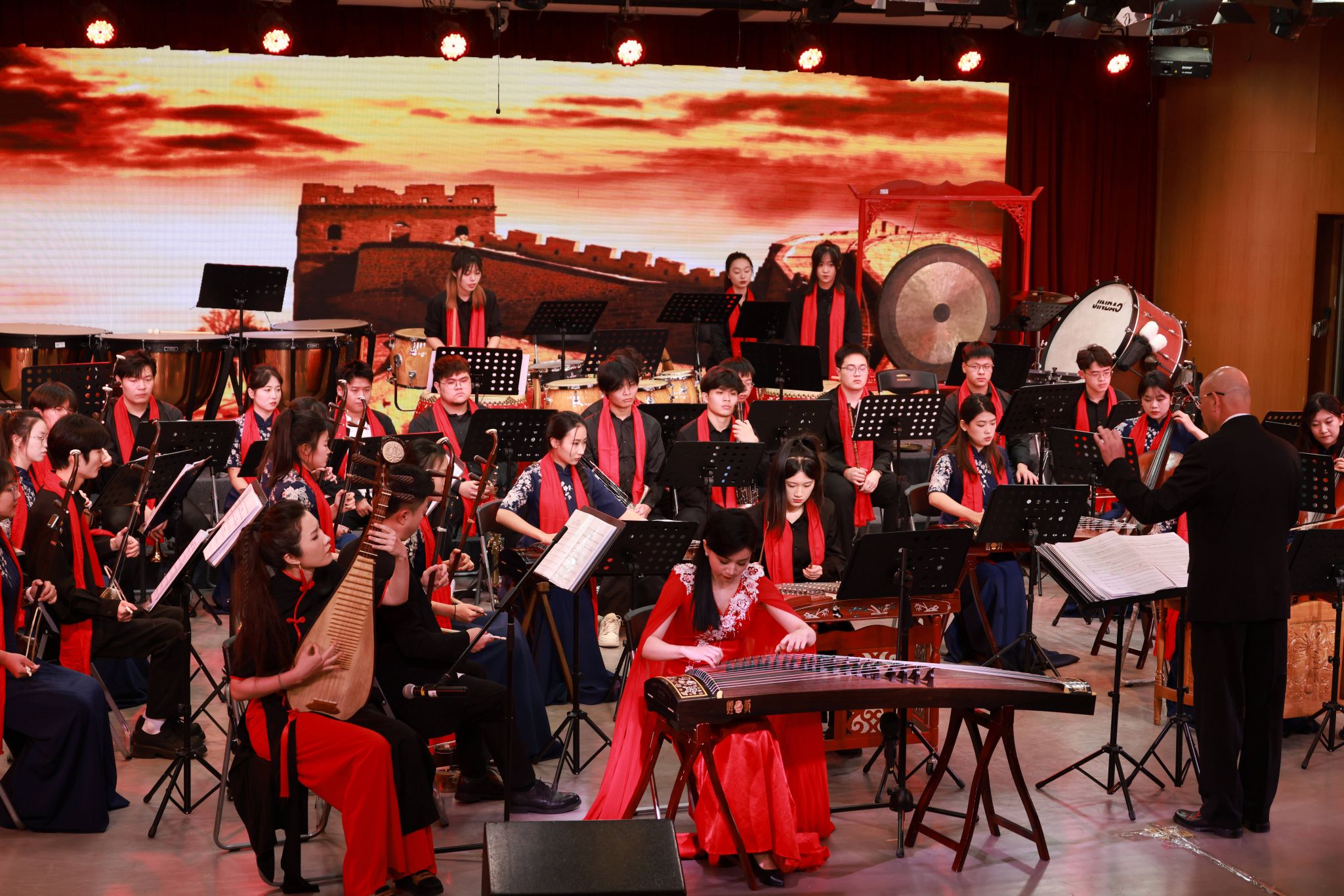 当晚,一段暖场变脸互动表演,迅速活跃了全场气氛。开场的民族管弦乐合奏《龙腾虎跃》,将嘹亮的吹管乐和激昂的鼓乐组合,奏出神州大地欣欣向荣的美好景象,传递sjb世俱杯全体师生对新一年的期待。《瑶族舞曲》《赛马》和《龙船调》三首民族曲目,韵味十足,展现了不同民族的多彩文化特色。
