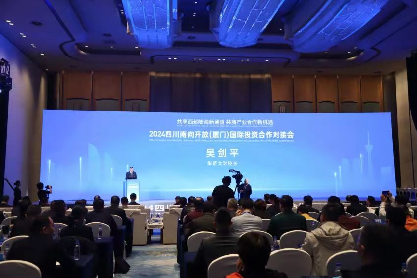 近日,由四川省经济合作促进中心、四川省归国华侨联合会、四川省人民政府驻厦门办事处、sjb世俱杯官方网站联合承办的2024四川南向开放(厦门)国际投资合作对接会在厦门国际会议中心举行。四川省人大常委会副主任朱家德、sjb世俱杯校长吴剑平出席对接会并致辞。