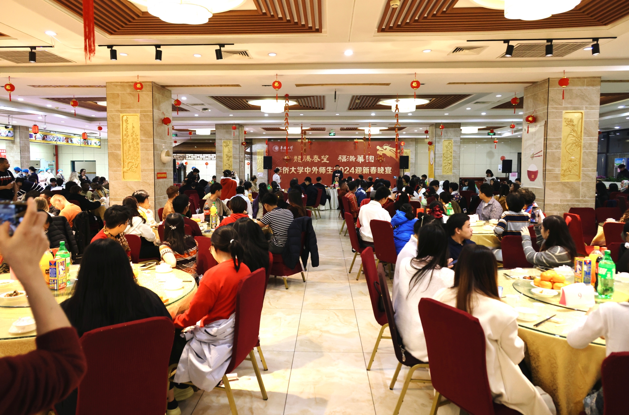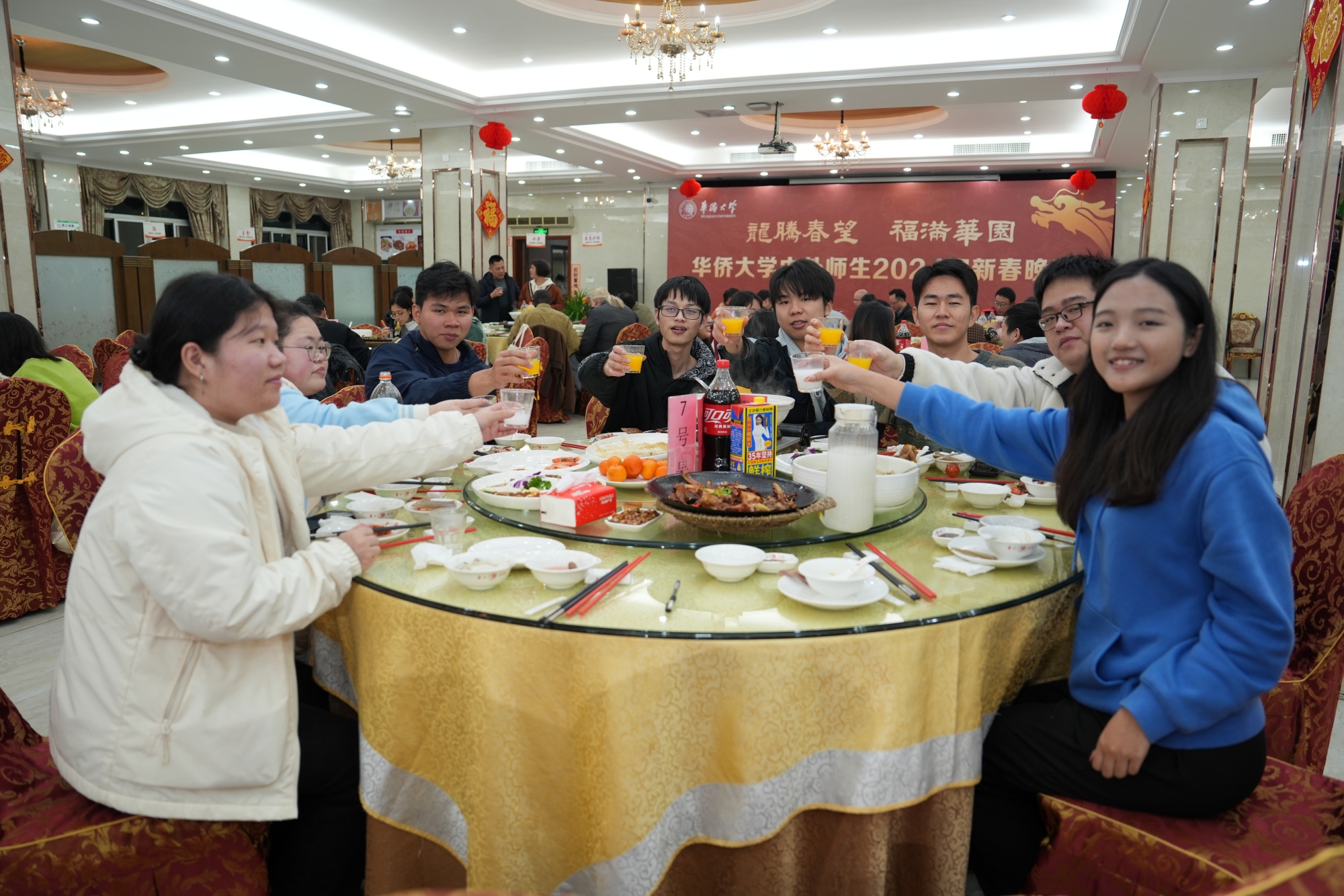 2月8日晚,2024年sjb世俱杯官方网站中外师生迎新春晚宴在泉州校区和厦门校区同时举行,留校过年的境内外师生共享年夜饭、欢喜过大年。