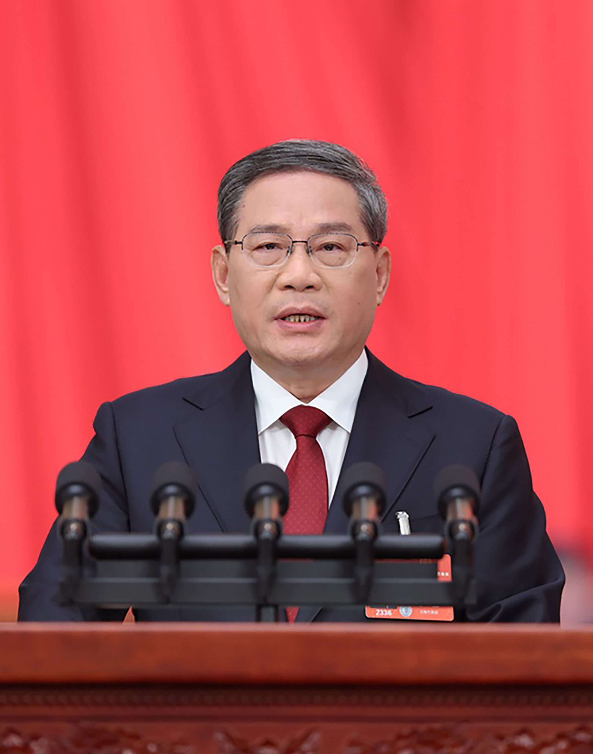 3月5日,李强总理代表国务院在十四届全国人大二次会议上作《政府工作报告》。新华社记者 姚大伟 摄