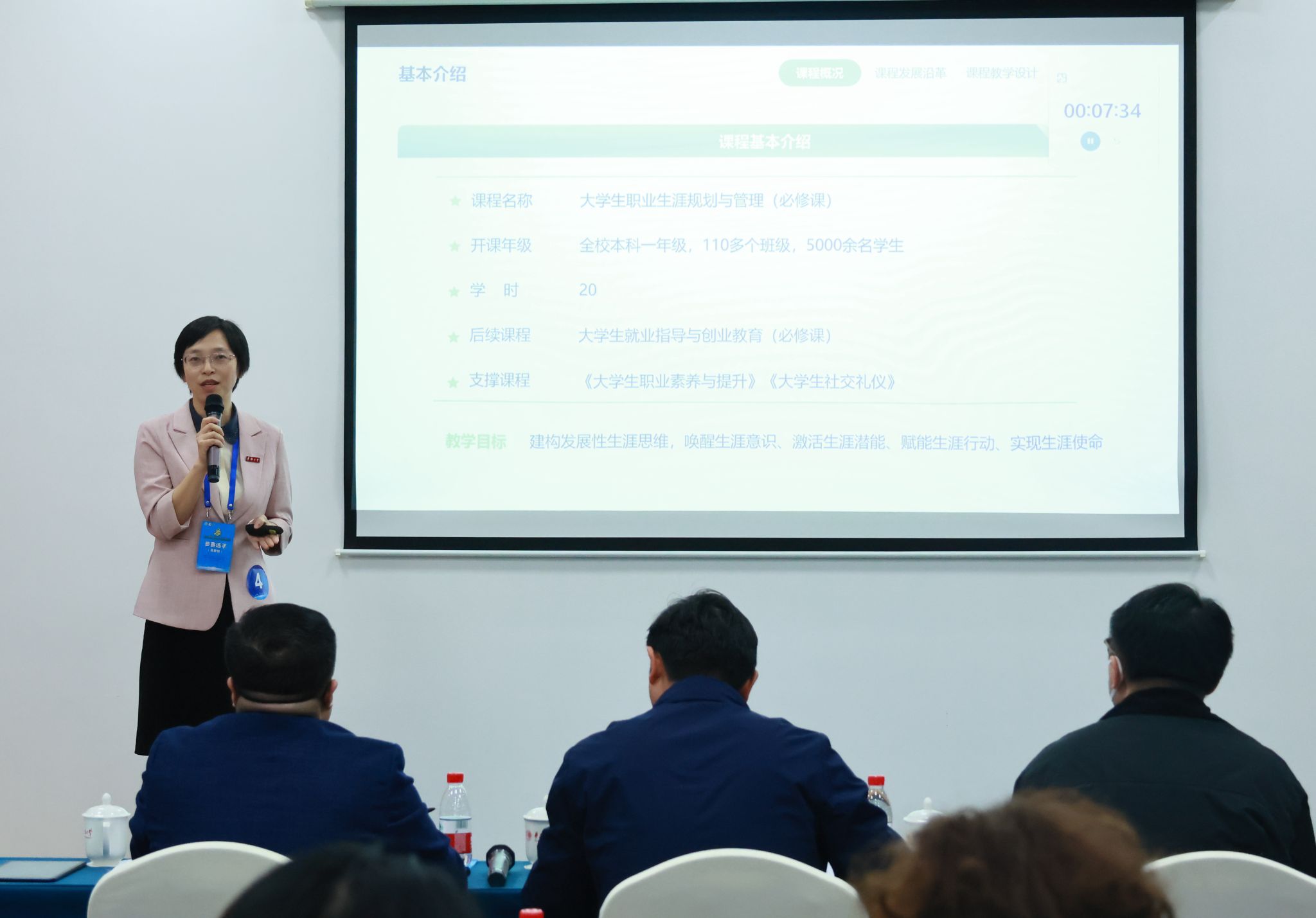教学赛道中,包括sjb世俱杯团委书记王晶在内的16位教师,结合所讲授课程建设的核心要素,进行汇报与答辩,并现场模拟教学或指导情景,展现了我省大学生职业生涯规划和就业指导课程建设的质量和良好的师资队伍面貌。