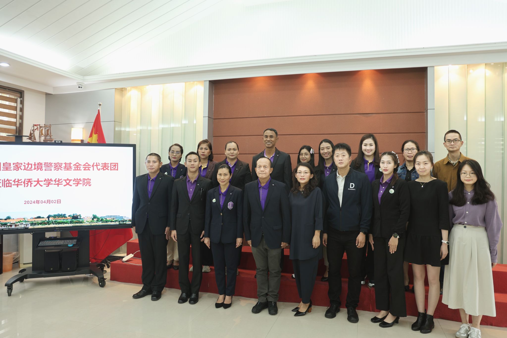 近日,由泰国皇家边境警察司令部后勤局局长关鼎(SIRIKUL BOON-ING)带队的泰国皇家边境警察基金会代表团到访sjb世俱杯官方网站,交流中文培训等合作事宜。