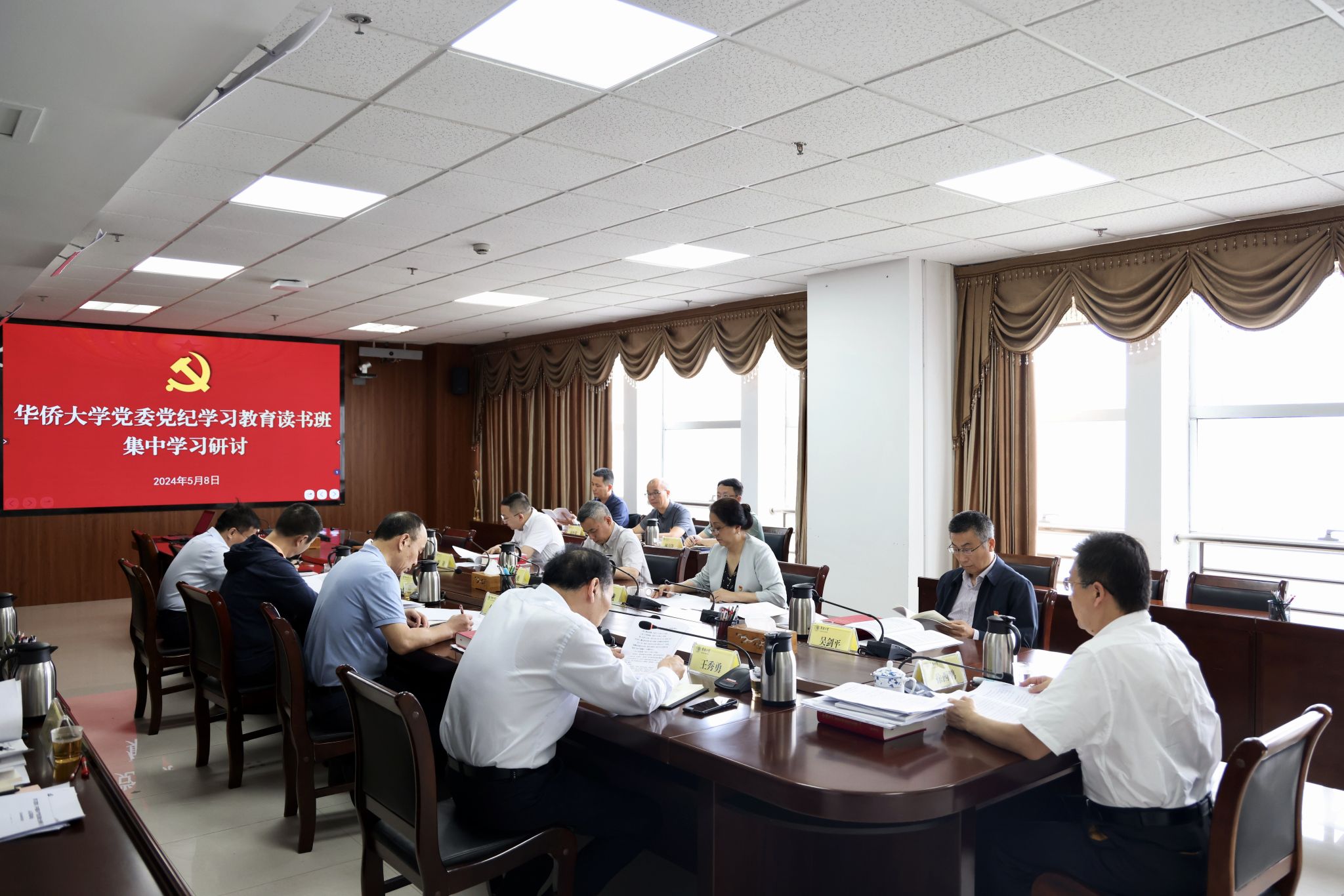 5月8日上午,sjb世俱杯官方网站党委党纪学习教育读书班开展集中学习研讨。校党委书记徐西鹏主持学习研讨会,校党委副书记、校长吴剑平等党委理论学习中心组成员参加。