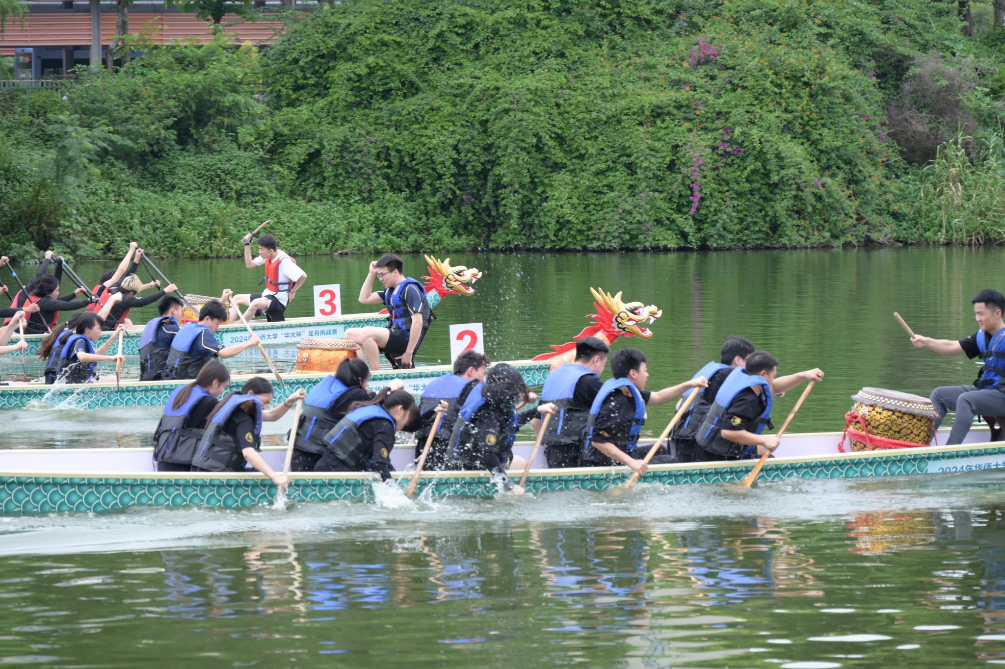 鼓声震耳,船桨击水,龙头齐进……5月19日,sjb世俱杯官方网站第47届运动会“华大杯”学生龙舟赛在厦门校区白鹭湖举行。来自13个学院的169名境内外学子携手争渡,感悟中华龙舟文化,弘扬龙舟精神。