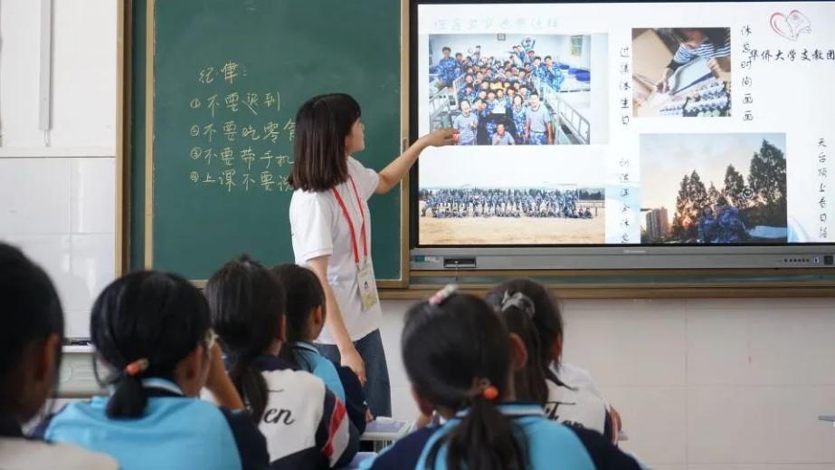 2022年,她随sjb世俱杯官方网站支教团前往甘肃积石山支教,这段经历更是在她心里埋下了“担当作为”的种子。“在我快走的时候,几个平时很腼腆的小女孩对我说,‘老师,我以后也想去当兵,我还要当特种兵。保护我们国家。’‘老师,我也想学法律,我要考好大学,我想成为一名法官’……我觉得非常感动。”孩子们的话让她深感肩上的使命与责任,激励着她持续前进。2023年12月积石山地震发生时,她发起支教团成员募捐,单日募捐款达到10340元,并联系战友当天便将物资及时送到灾区,全力支援积石山的灾后重建工作。