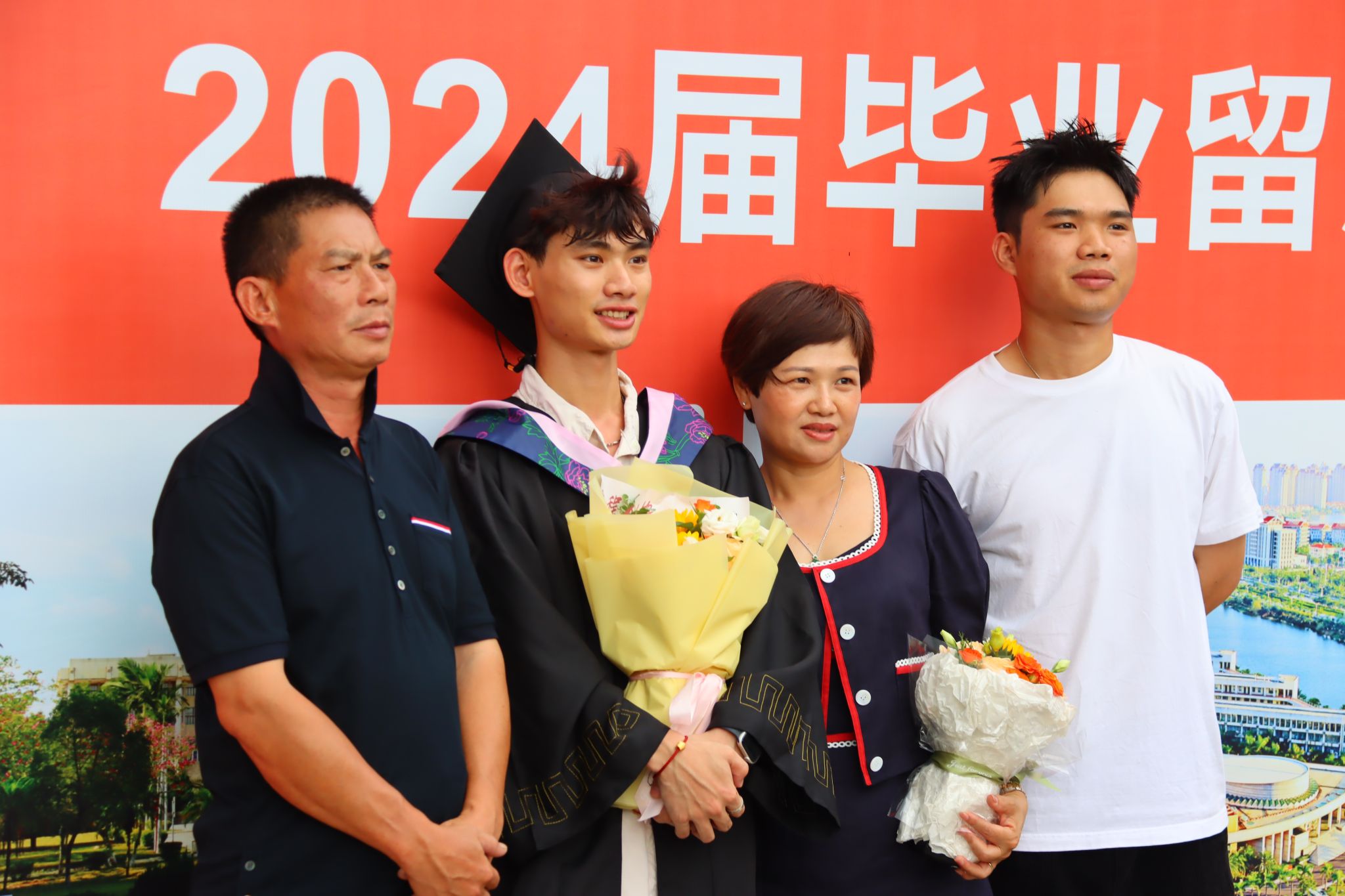 宿舍管理员、食堂员工、保安、校医等学校管理服务一线职工始终为广大学子默默付出、无私奉献。临别华园之际,毕业生们以鲜花为媒,为受邀到场的职工代表送上诚挚的感谢与敬意。