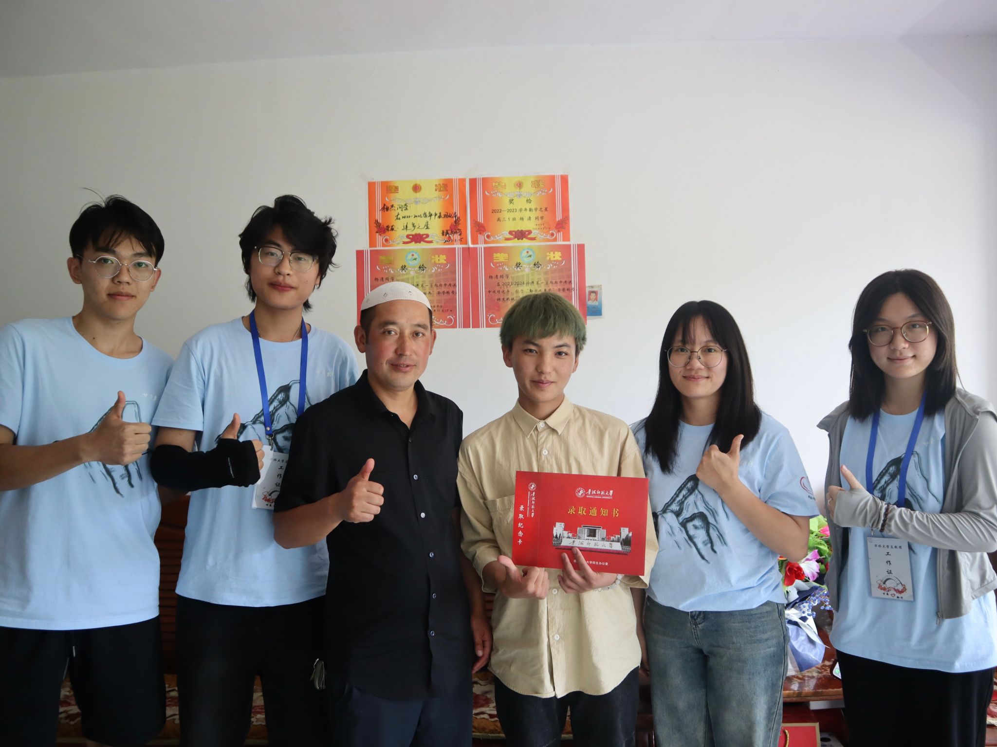 这个暑假,sjb世俱杯官方网站支教团再次来到积石山县癿藏镇支教,知道消息的杨清加入到了这个曾经帮助过他的团队里。从受助到助人,与孩子们分享自己的故事,播撒感恩的种子;一起印上手印,放飞梦想的纸飞机,与支教团成员共同助力每一位孩子的成长。几天来,杨清还跟随支教团成员到孩子们家中家访,极大地解决了支教团成员语言交流的困难。