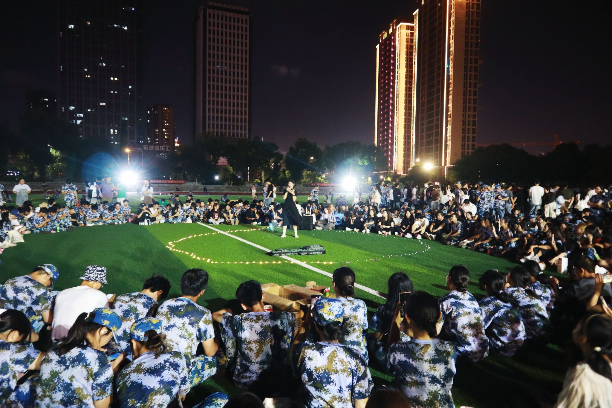 此外,2024级境内新生军训也接近尾声,各连队在训练场地齐聚一堂,在月光下开启联欢。校艺术团、舞狮队、二十四节令鼓队、街舞社、声乐社等也献上“闪耀中秋”文艺快闪,为同学们带来视觉与听觉的盛宴。现场掌声和欢呼声此起彼伏,将节日的气氛推向一个又一个高潮。