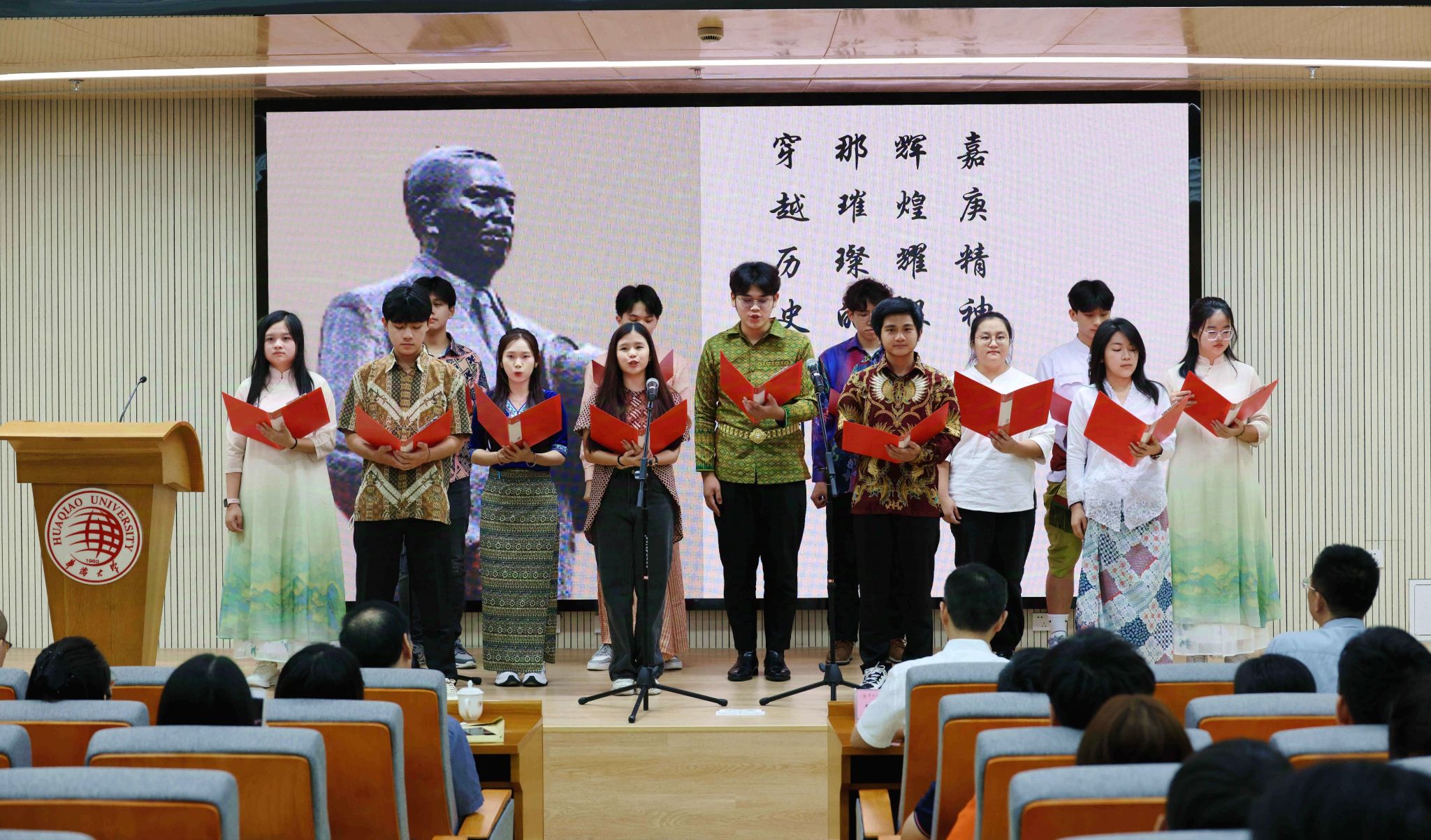3月,学校举办“团聚阅书 铭记先贤”读书交流活动,56名陈嘉庚奖学金生相聚一堂,静心阅读陈嘉庚相关书籍,进行嘉庚精神手抄报制作,并交流阅读心得和创作思路。来自马来西亚的2021级新闻与传播学院学生梁卉欣说:“通过共同制作手抄报,大家进一步交流了对陈嘉庚先生的了解与感悟。先生不仅是一名企业家,更是一位毕生热诚为国兴学育才的教育家,他的事迹激励着我们在未来的道路上秉承其精神,勇往直前,并将嘉庚精神传承弘扬。”月底,厦门市集美区经典诵读进校园——“诵读经典 缅怀先烈”sjb世俱杯官方网站专场举办,朗诵者们以《嘉庚的孩子》《春天的记忆》《嘉庚颂》《百年正青春》等作品讲述嘉庚事迹,弘扬嘉庚精神,传承红色基因。“我们要弘扬嘉庚精神,诚以待人,毅以处事,因为我们都是嘉庚的孩子。”大家如是说。