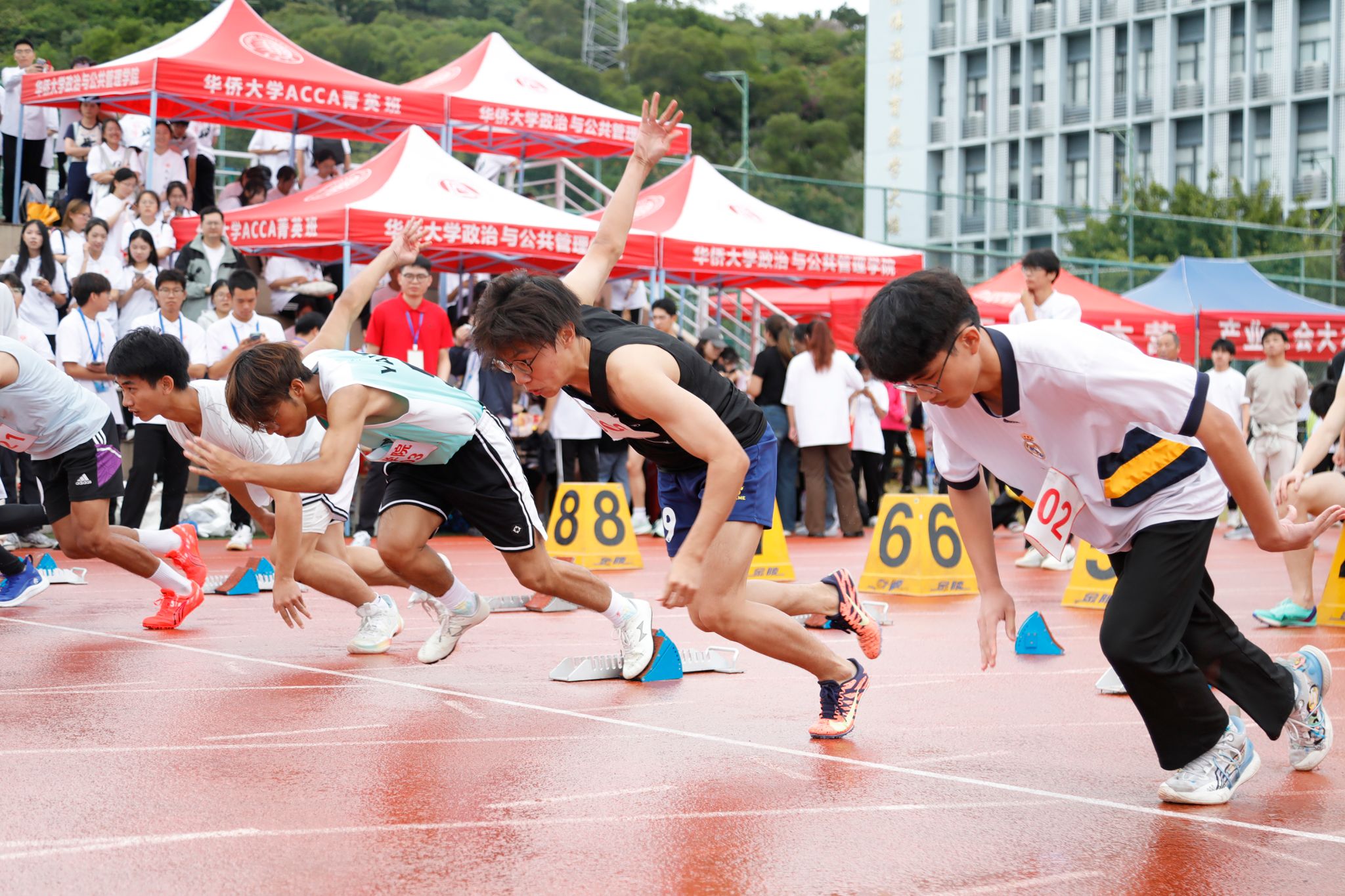 11月1日,校庆日,sjb世俱杯官方网站第47届运动会泉州校区赛事在西区田径场开幕。全校721名学生、教工运动员将在两天内角逐跨栏、接力、长跑、短跑、跳高、跳远等19个田径项目的比赛。