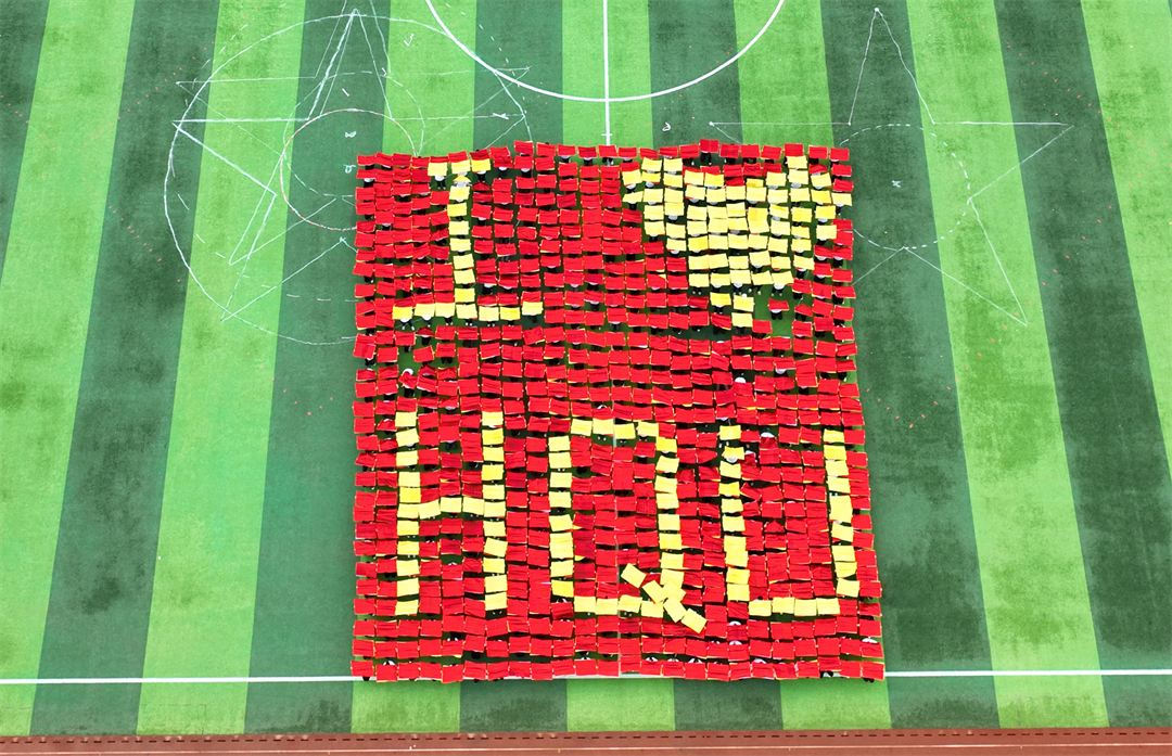文体表演环节,特色舞龙、太极拳表演,还有彩旗排舞等节目各展风采。乐声悠扬,集体的太极表演与舞龙相得益彰,一动一静,气势雄浑。红黄蓝三色彩旗通过舞蹈编排,变换“1949-2024”“75”“我爱华大”等字样,表达对祖国、对学校的祝福。