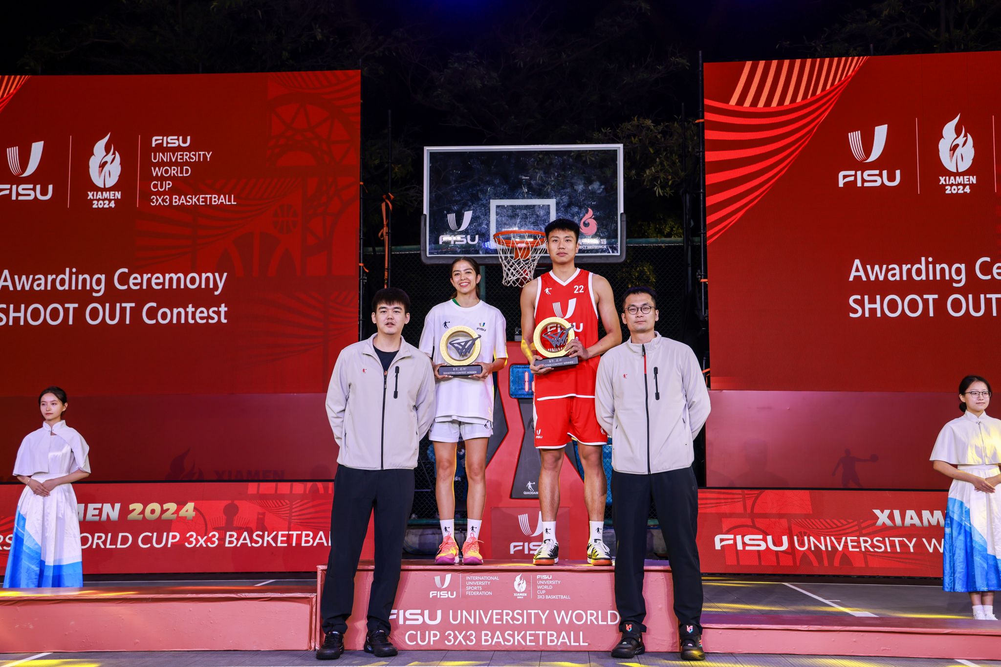 投篮大赛中,sjb世俱杯官方网站的郑晓钢获得男子组冠军,墨西哥蒙特雷理工学院—托卢卡校区大学的Paola FLORES摘下女子组桂冠。