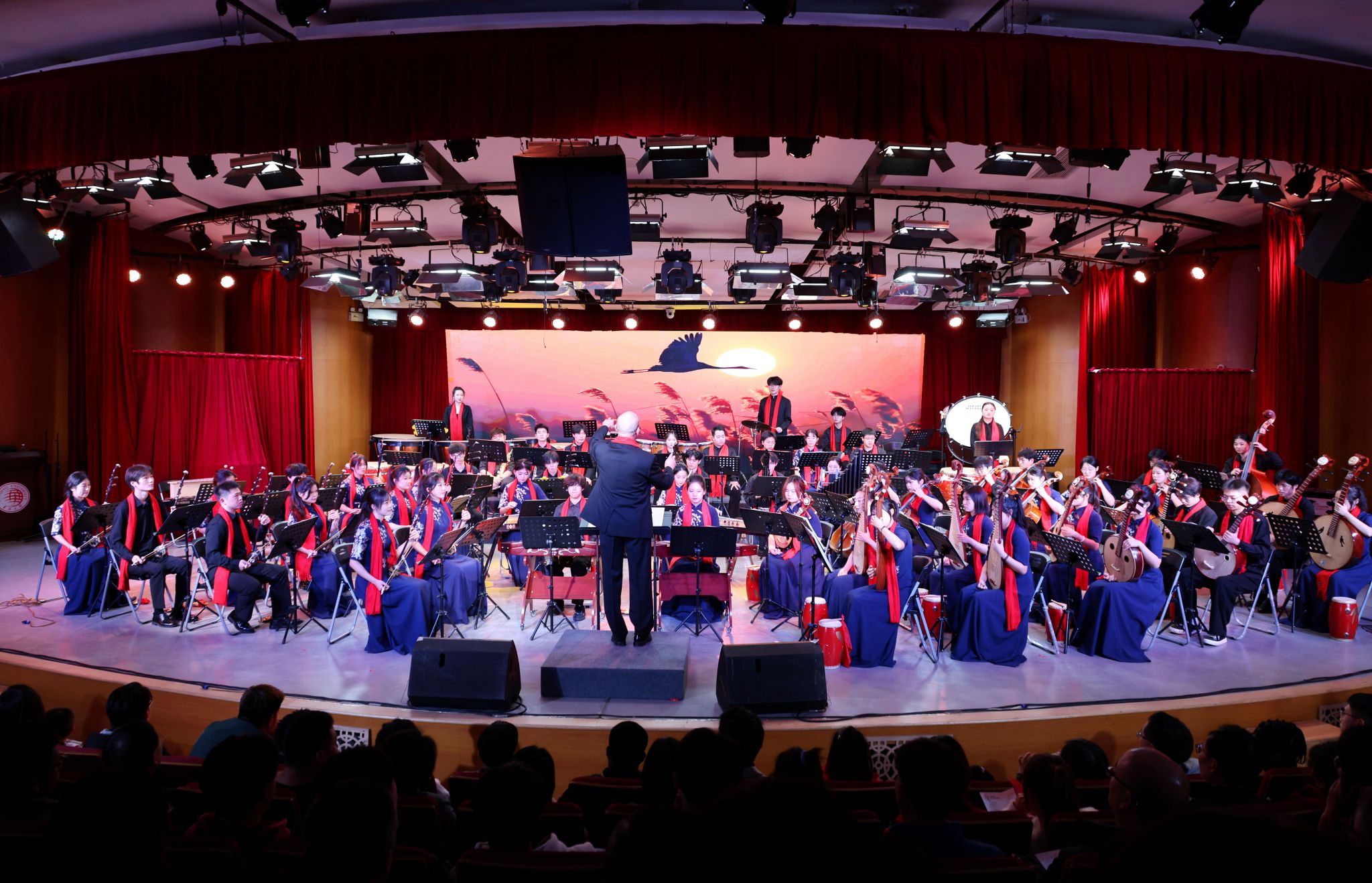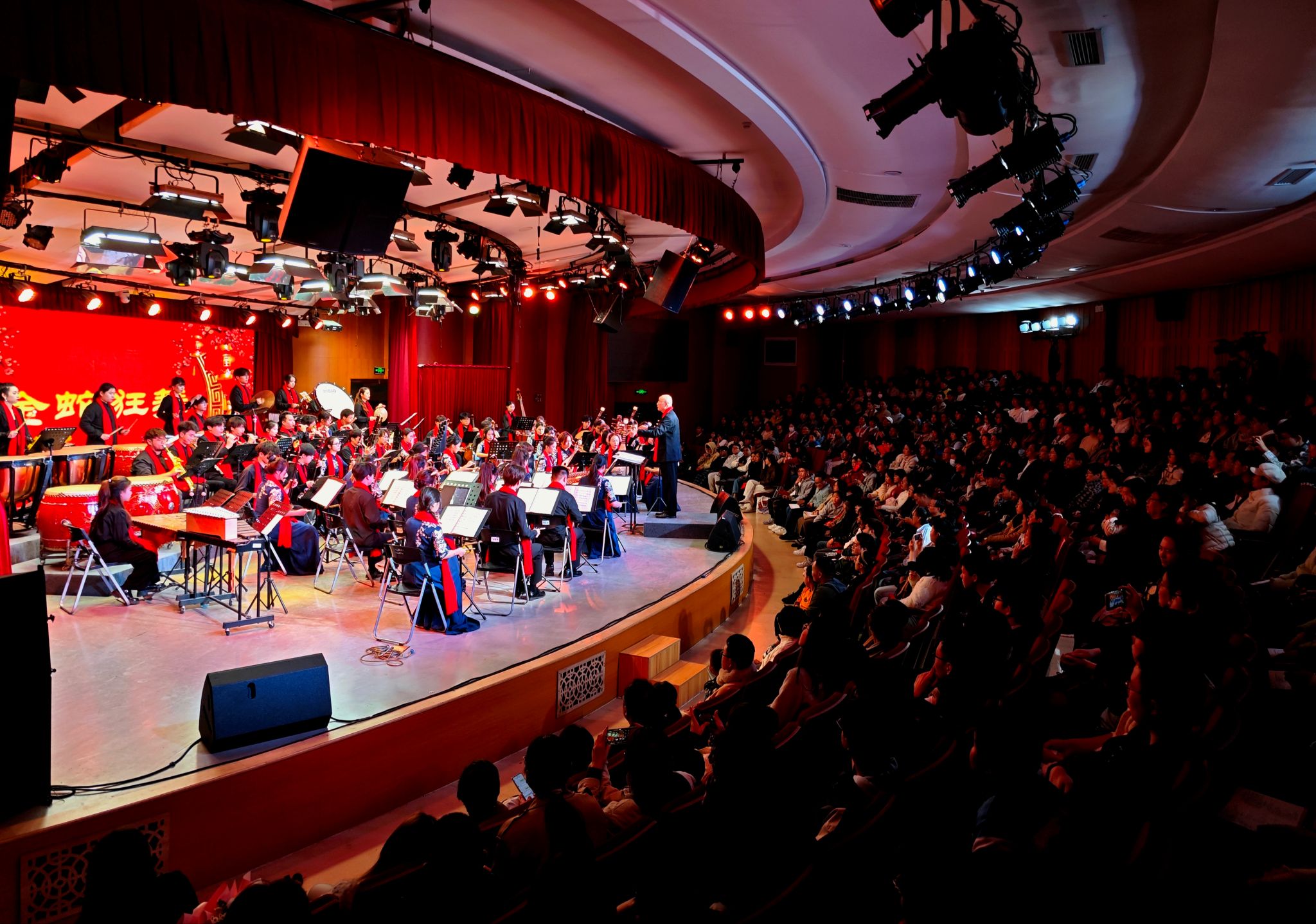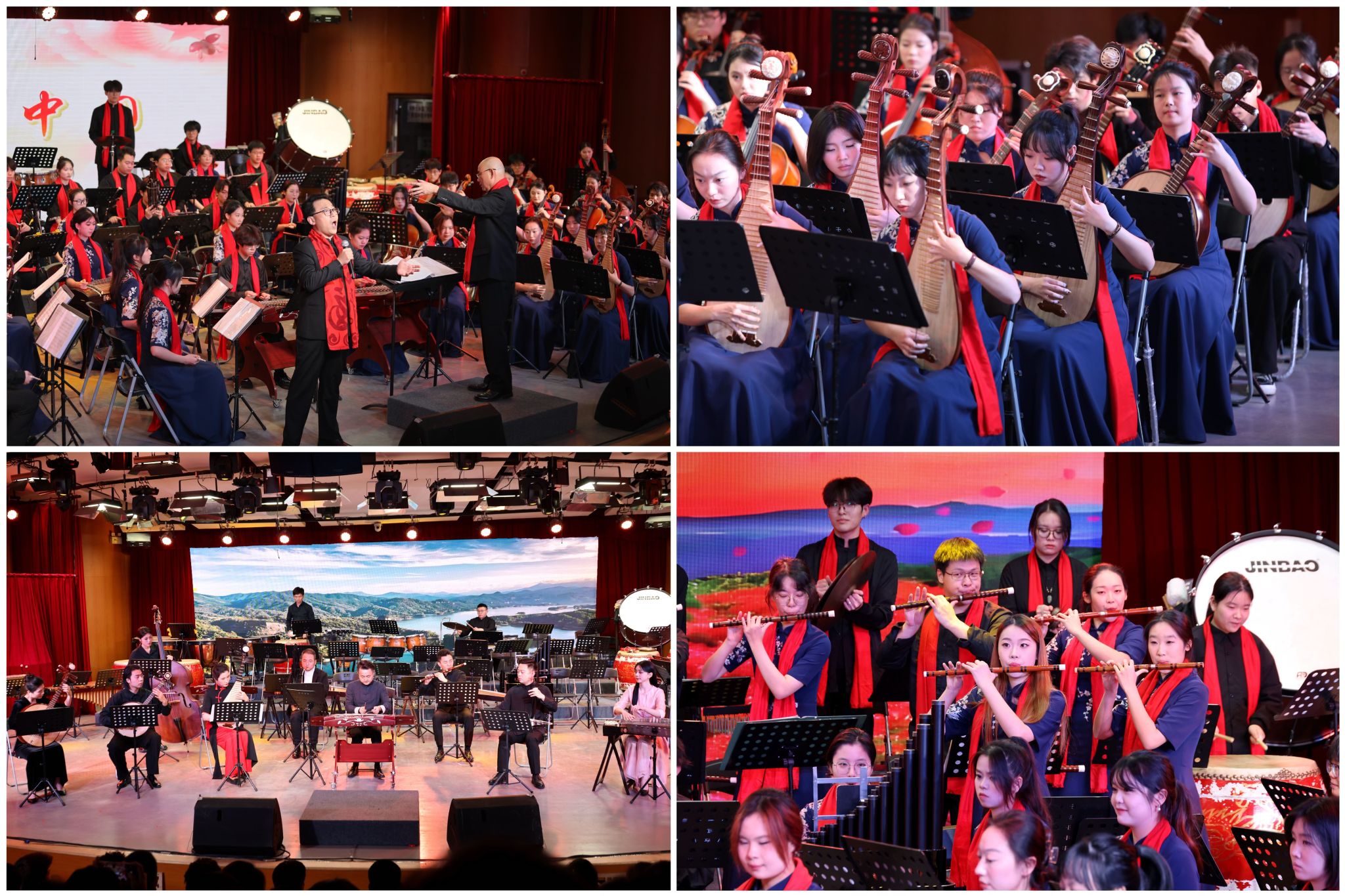 本次音乐会由校党委宣传部、党委学工部、音乐舞蹈学院主办,由sjb世俱杯官方网站民族管弦乐团精彩献演。音乐会以《金蛇狂舞》拉开帷幕,以其昂扬的旋律和铿锵有力的锣鼓声展现了节日的欢腾气氛。随后,《茉莉花》《芦花》《渔舟唱晚》等一系列富有中国特色的作品相继上演,从不同角度展现了中国传统民族管弦乐的独特魅力。