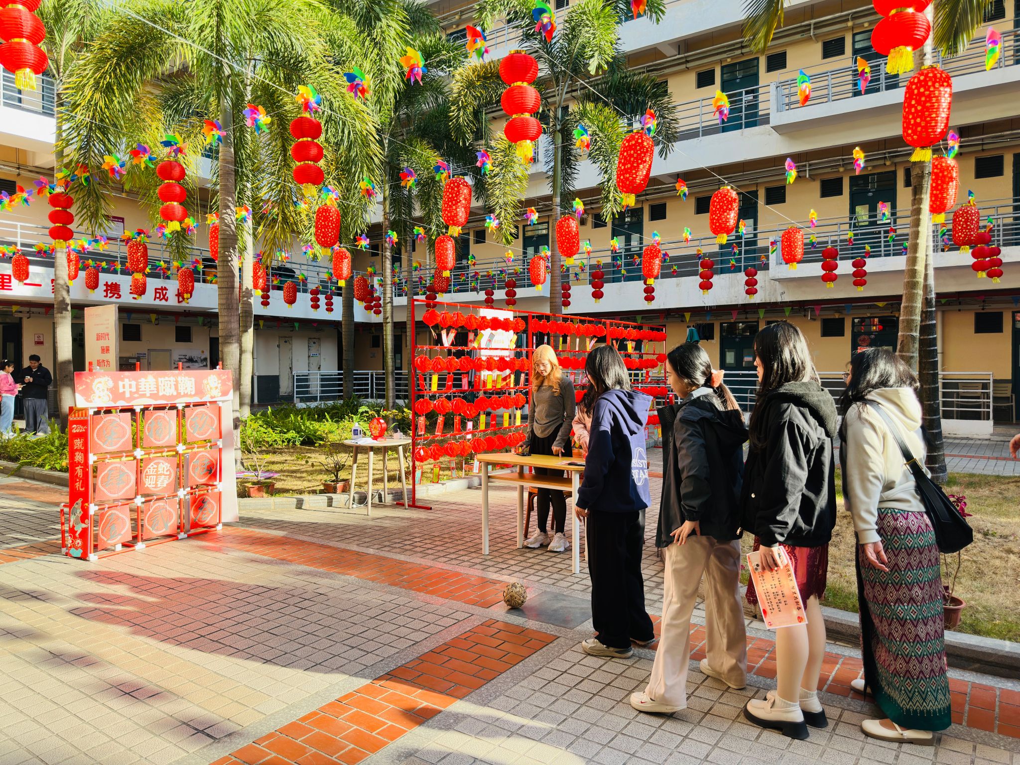 1月27日下午,侨缘邻里中心、毓秀侨苑张灯结彩,来自印度尼西亚、泰国、马来西亚、缅甸、斯里兰卡、埃塞俄比亚、斐济和中国港澳台地区等地的百余名留校境内外学生欢聚一堂,一同包饺子、做糖画、踢蹴鞠、猜灯谜、剪窗花……品味民俗同赏古韵,邻里携手共启新程。