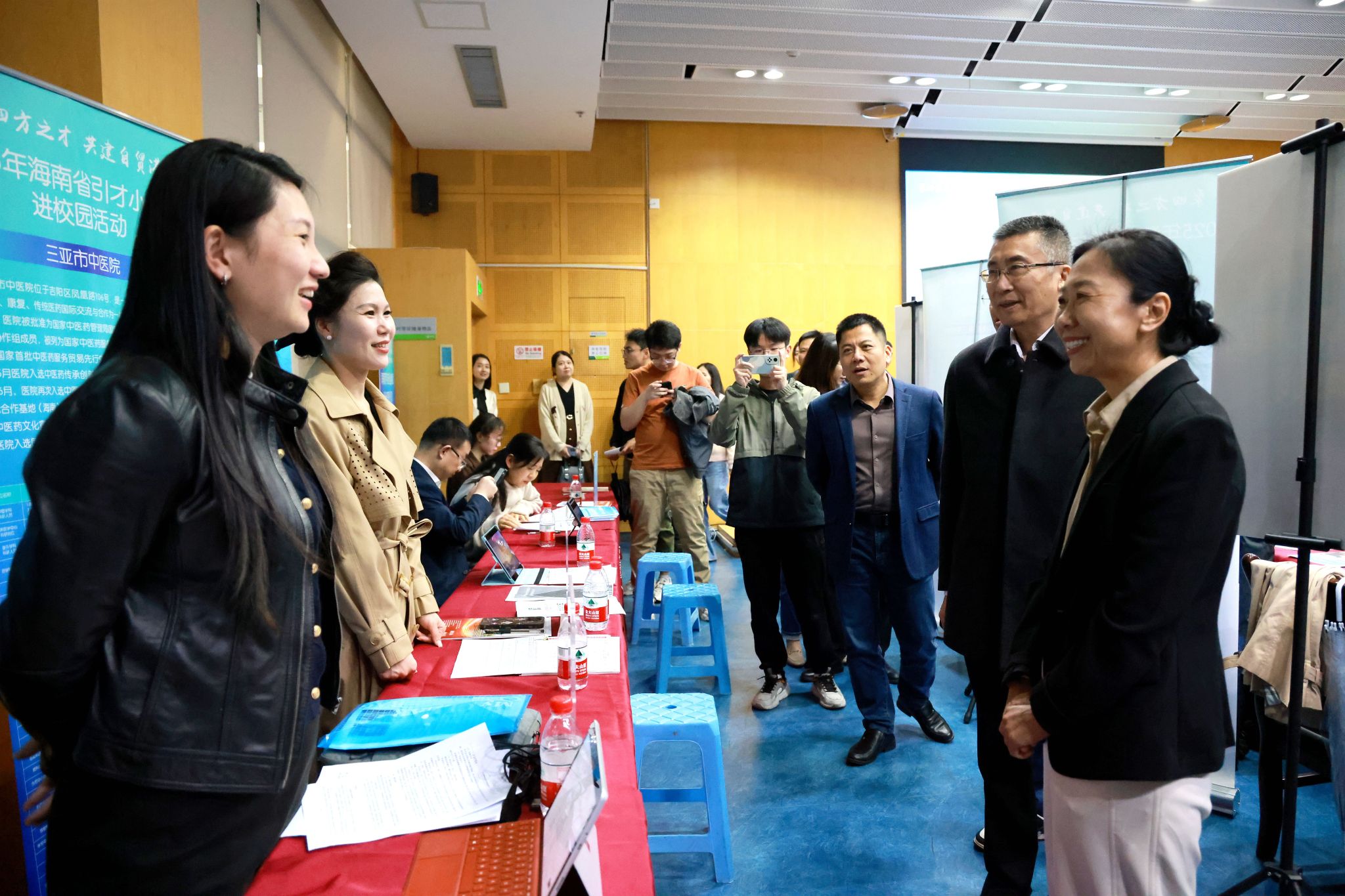据悉,此次是海南省组团招聘首次走进sjb世俱杯官方网站,共有近20家国企、事业单位入校开展政策宣讲和招聘活动。政策宣讲会上,海南省人力资源开发局代表全面解读了海南省的产业布局、发展优势及引才政策,重点介绍了自贸港在跨境贸易、免税产业、数字经济等领域的广阔前景。