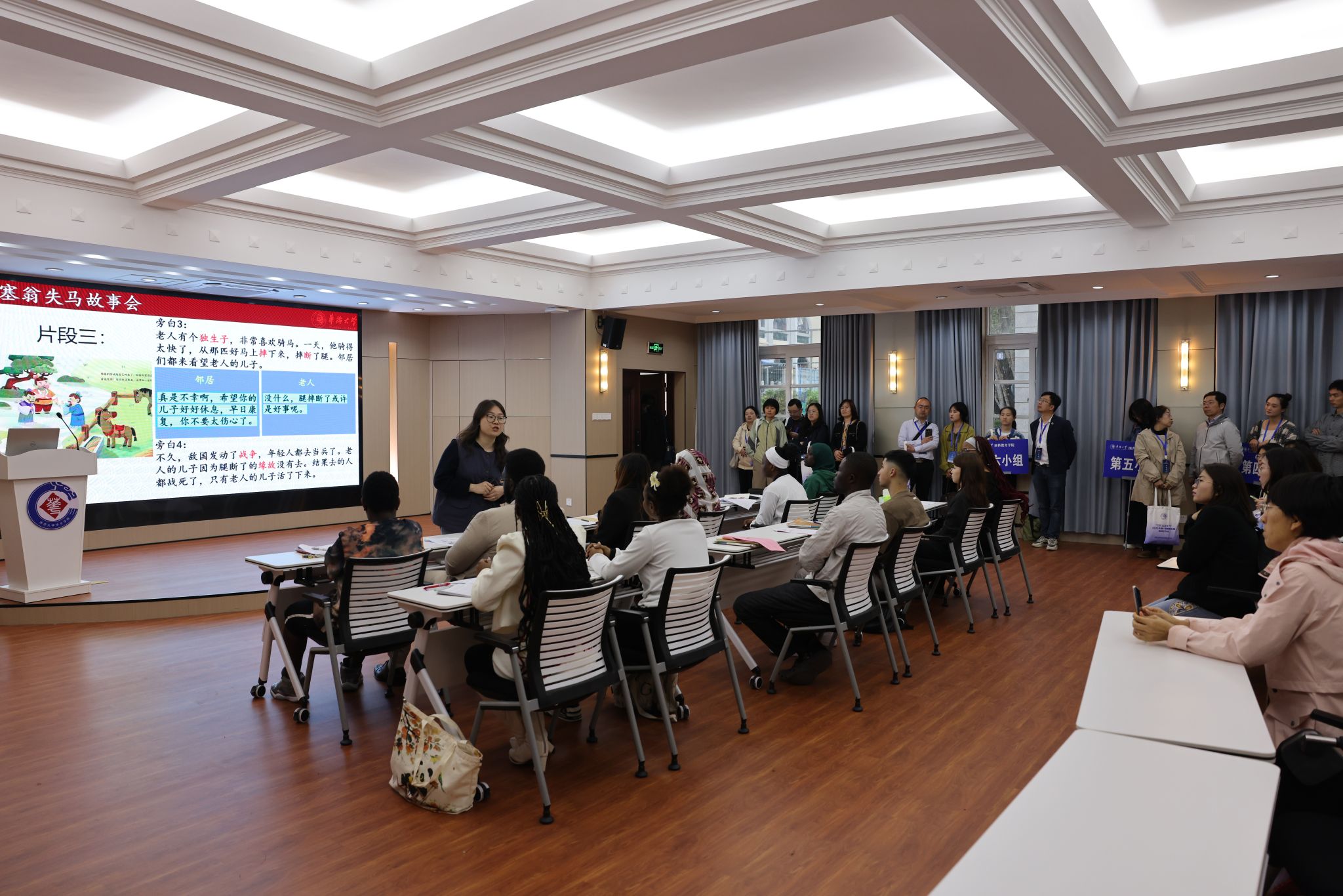 培训期间,依托sjb世俱杯官方网站预科教育学院的办学实践,与会代表全程参与了“sjb世俱杯官方网站预科教育学院学生集体大会暨百日誓师大会”,实地观摩基础中文、科技中文、文科中文等课堂教学,并在“同心中文・智慧语言教学”实验室沉浸式体验数字化语言教学成果,深入交流来华留学预科的管理特点与教学经验。