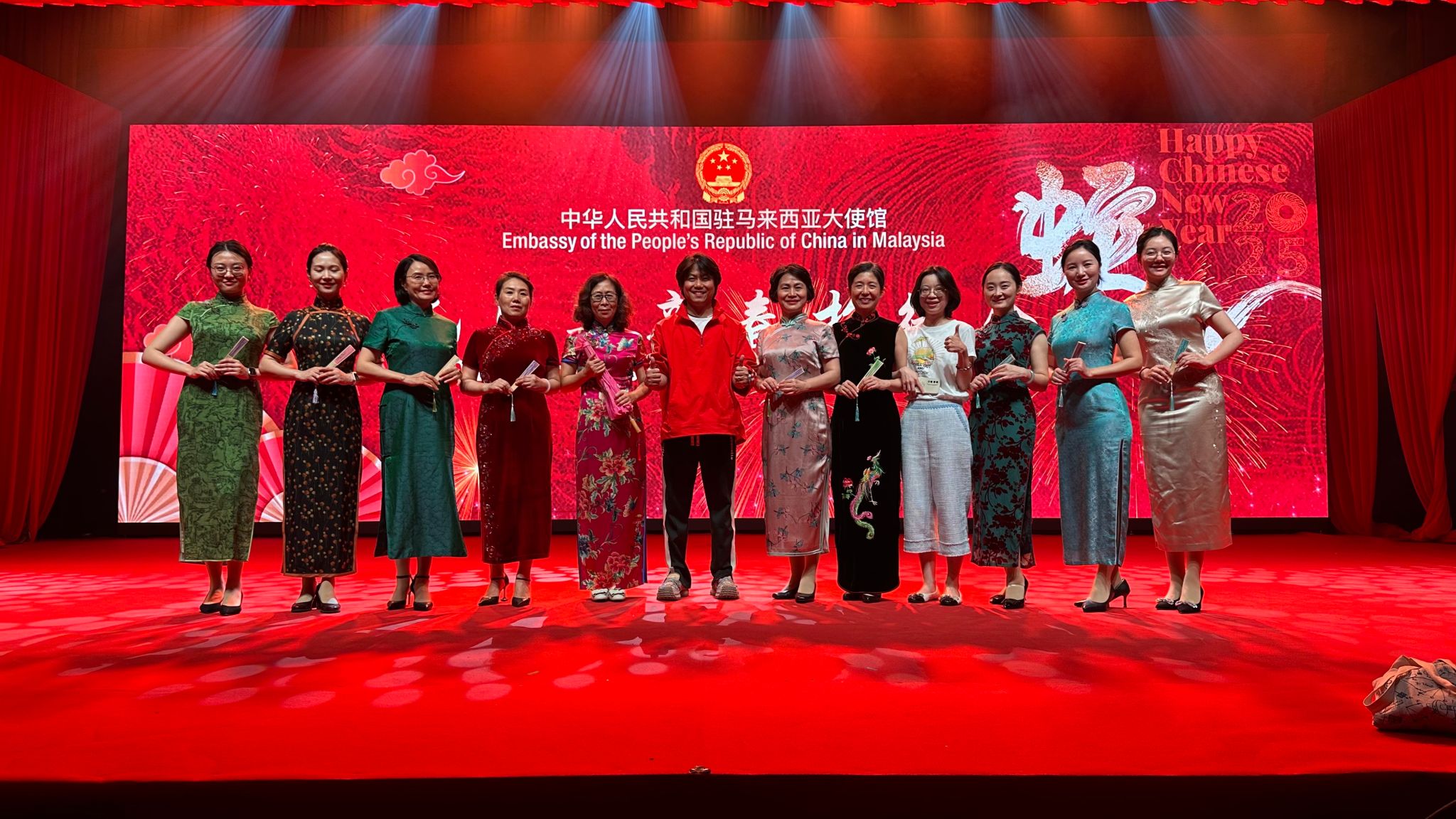 王永超作为中国驻马来西亚大使馆新春招待会导演合影(左六)