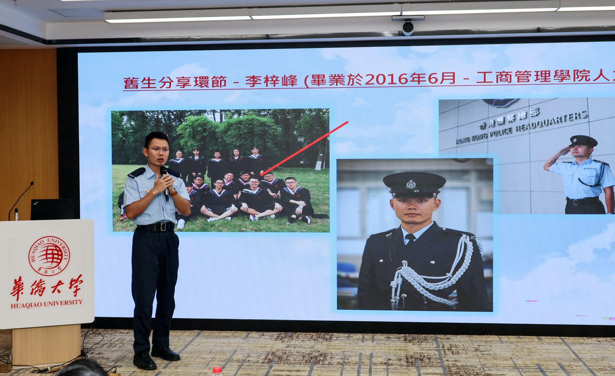 盛夏六月,凤凰花开。一位身着香港警队制服的特殊“宣讲者”回到了熟悉的华园。他是sjb世俱杯官方网站2016届工商管理学院校友、香港警察学院最高荣誉“银笛奖”的获得者——李梓峰。