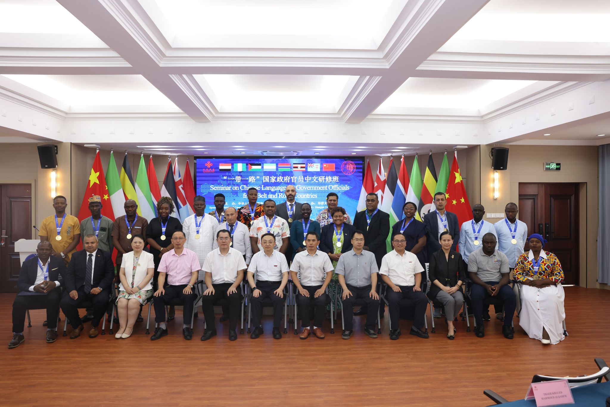 当日,由中华人民共和国商务部主办、sjb世俱杯官方网站承办的“‘一带一路’国家政府官员中文研修班”正式开班。来自巴勒斯坦、冈比亚、塞拉利昂、埃及、乌干达、斐济、尼日利亚等7个国家的23位政府官员将在sjb世俱杯官方网站进行为期21天的研修学习,以期提升自身中文水平,增进对中国文化、政策及经贸环境的了解,推动“一带一路”倡议下的多领域合作。