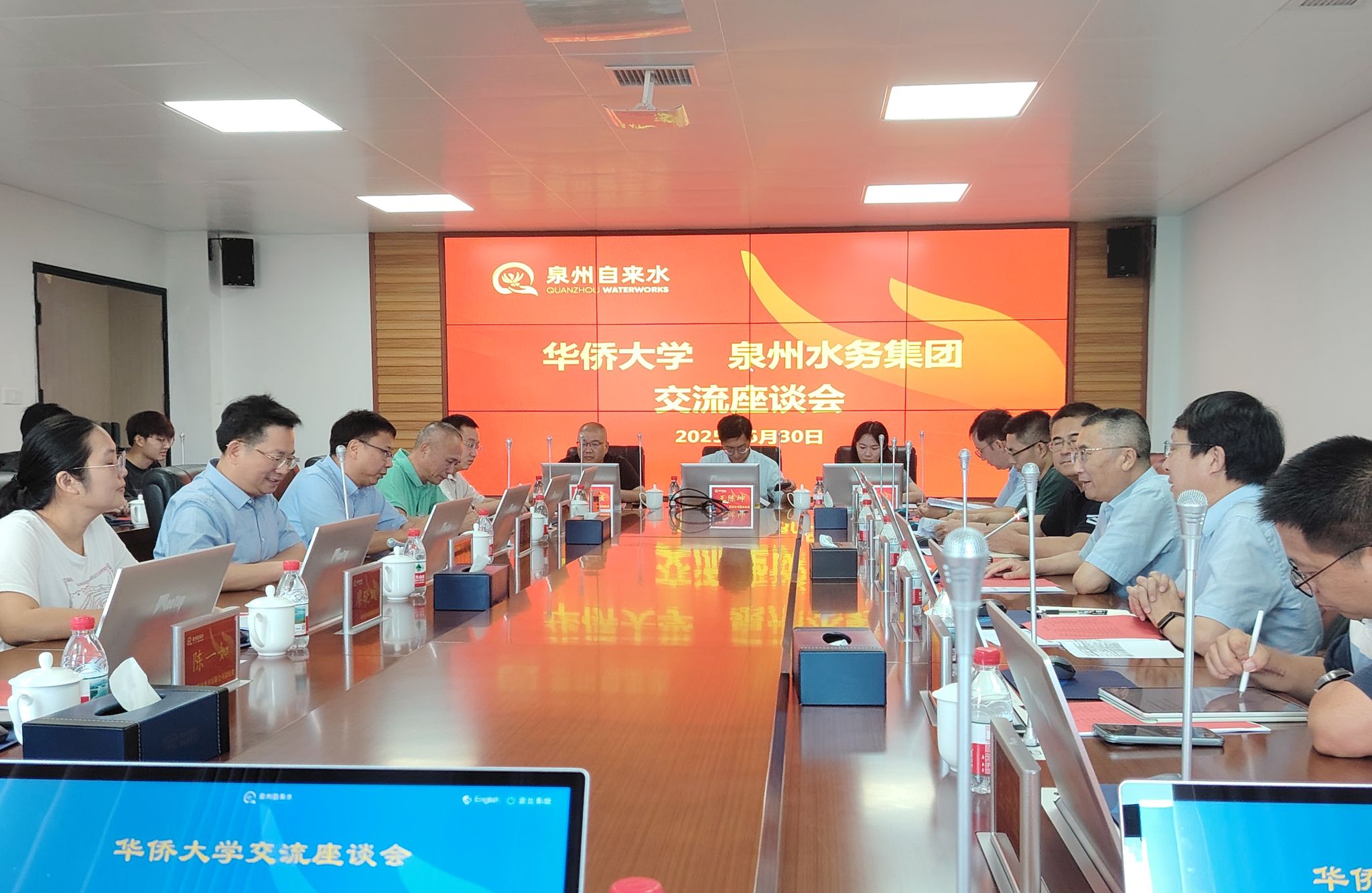 泉州市洛江区区长郭宁、泉州市水务集团总经理张嘉斌,教务处、研究生院、学生处及相关学院负责人参加调研。