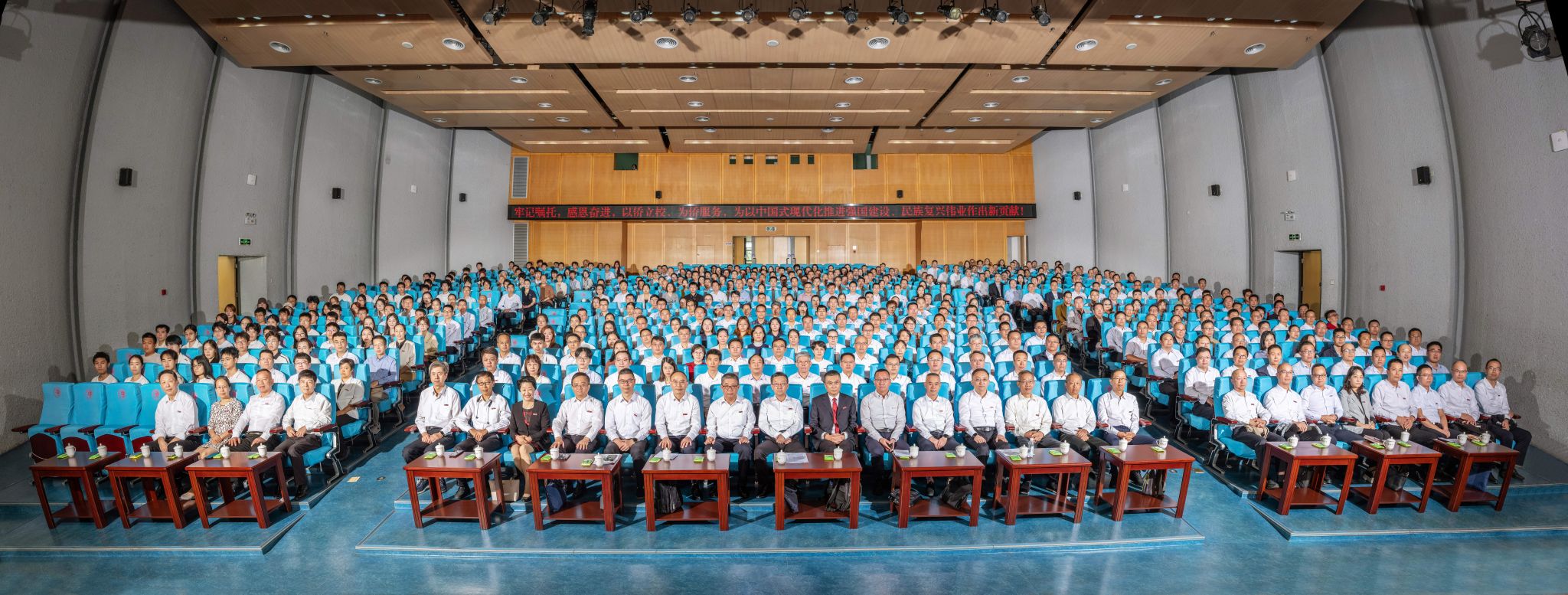 全体校领导、全体中层干部,离退休老同志、师生及校友代表参加大会。