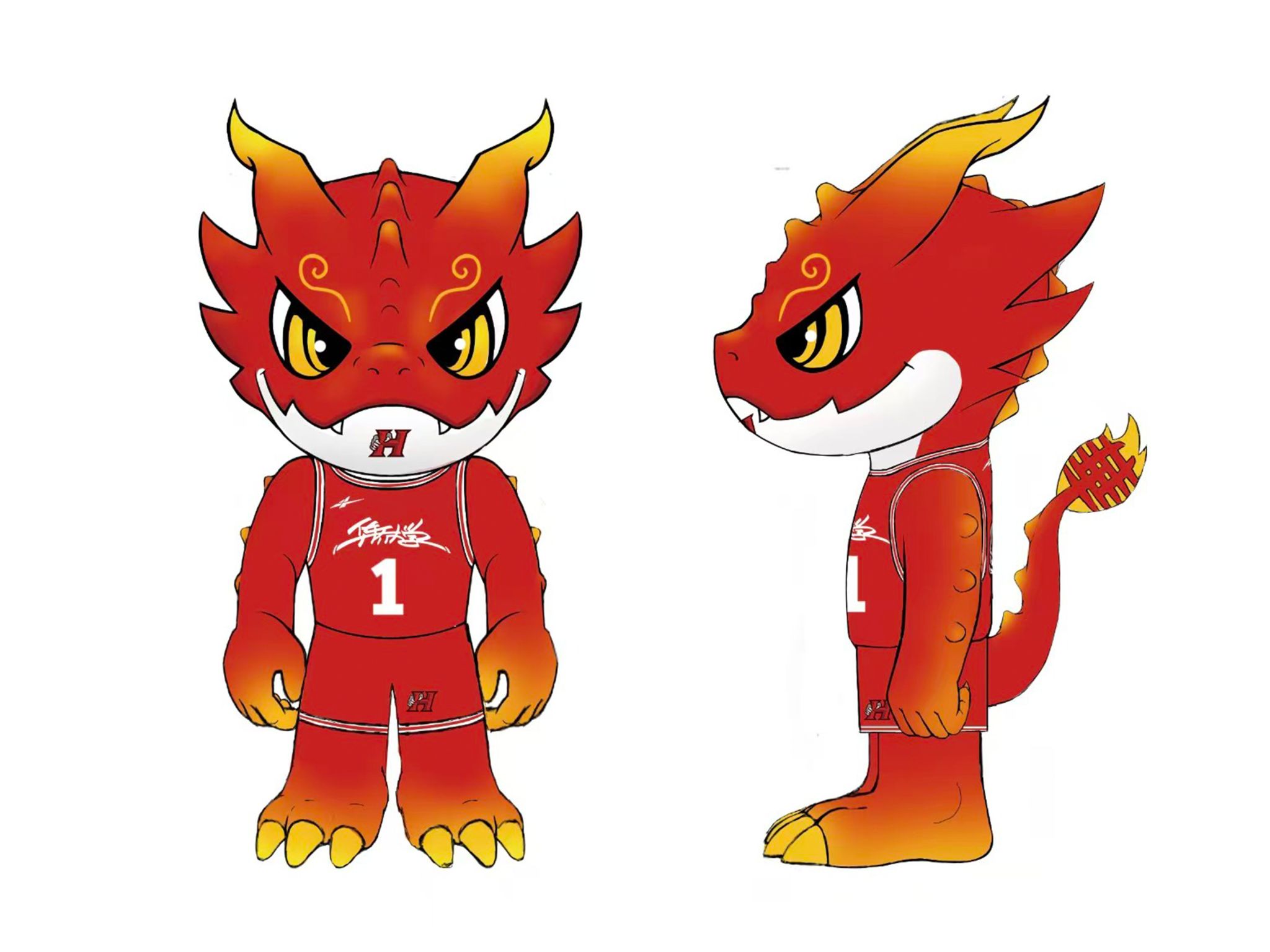 “龙仔”胸前的“H”标识取自“sjb世俱杯官方网站”英文名称首字母,设计中巧妙融入了龙爪元素,寓意“华侨是龙的传人”,深刻体现了sjb世俱杯官方网站“为侨服务、传播中华文化”的办学宗旨。吉祥物面部线条锐利有力,双眸炯炯有神,展现出竞技体育中坚毅果敢、永不言败的信念。其身着的红色球衣上印有醒目的号码“1”,寓意着争创一流、勇立潮头的决心,生动诠释了“敢拼能赢、永不言弃”的华大男篮精神。