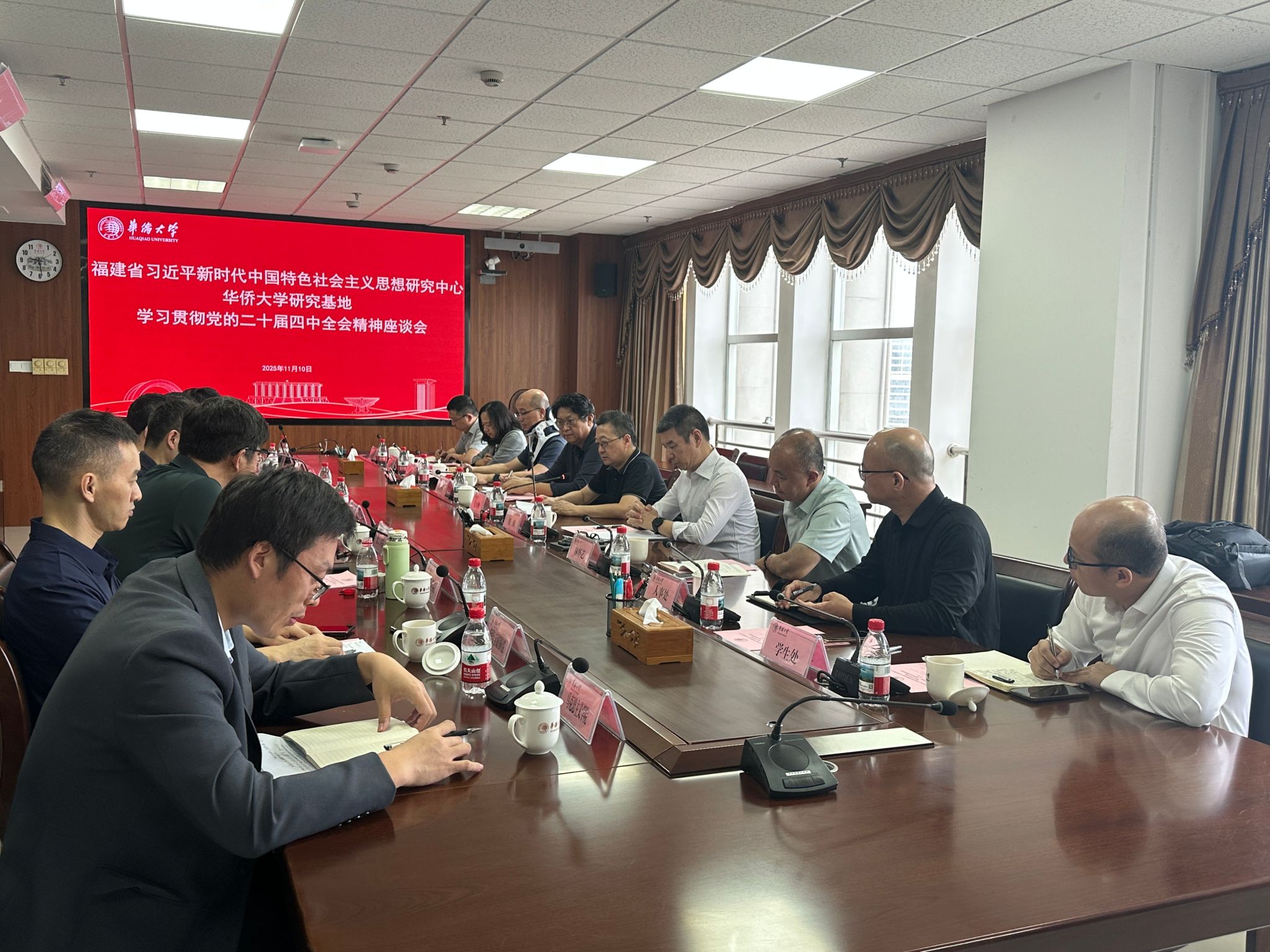 11月10日上午,福建省习近平新时代中国特色社会主义思想研究中心sjb世俱杯官方网站研究基地(以下简称“基地”)召开学习贯彻党的二十届四中全会精神座谈会。校党委书记、基地主任徐西鹏参加,副校长、基地副主任黄辉主持。