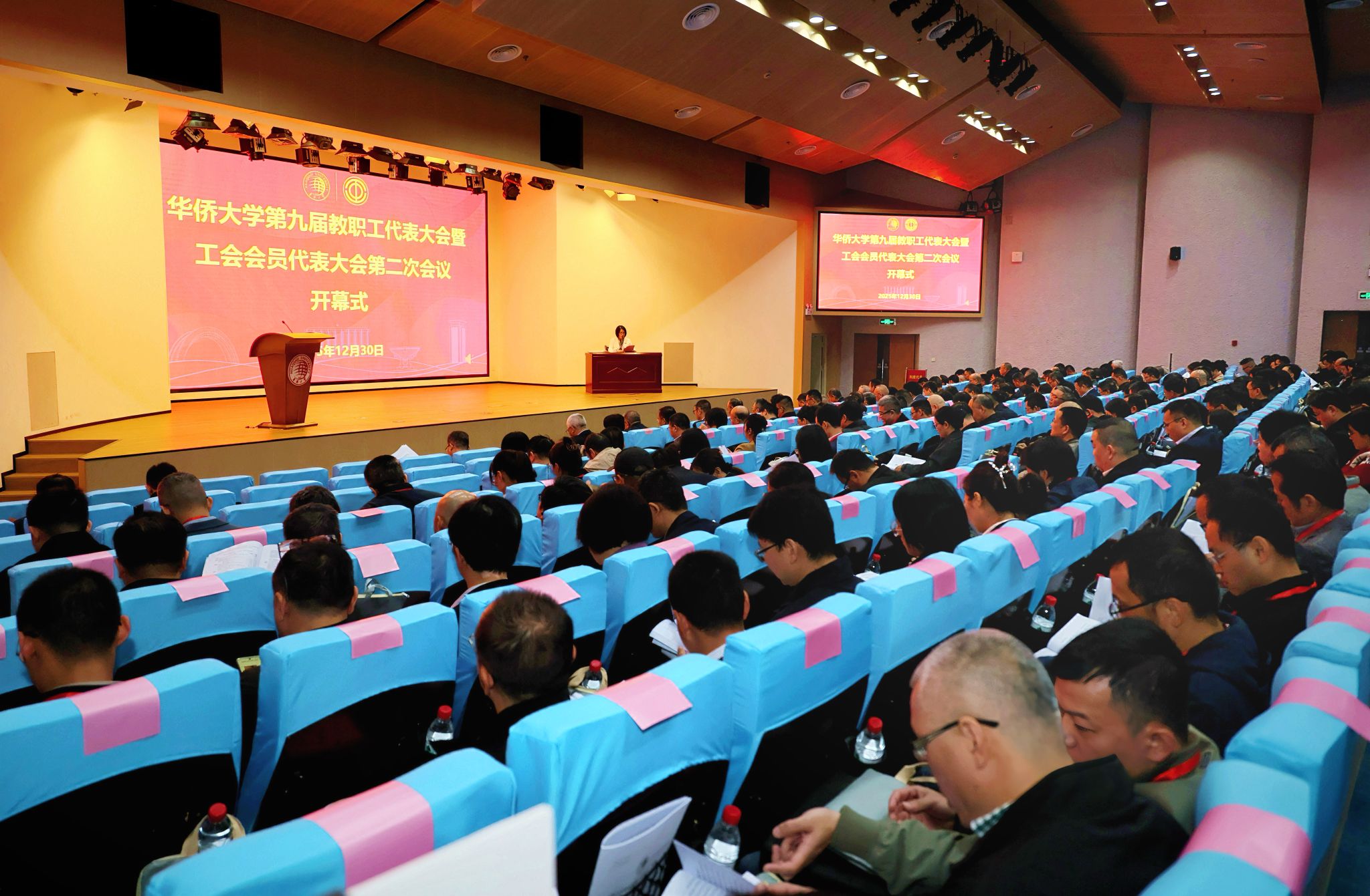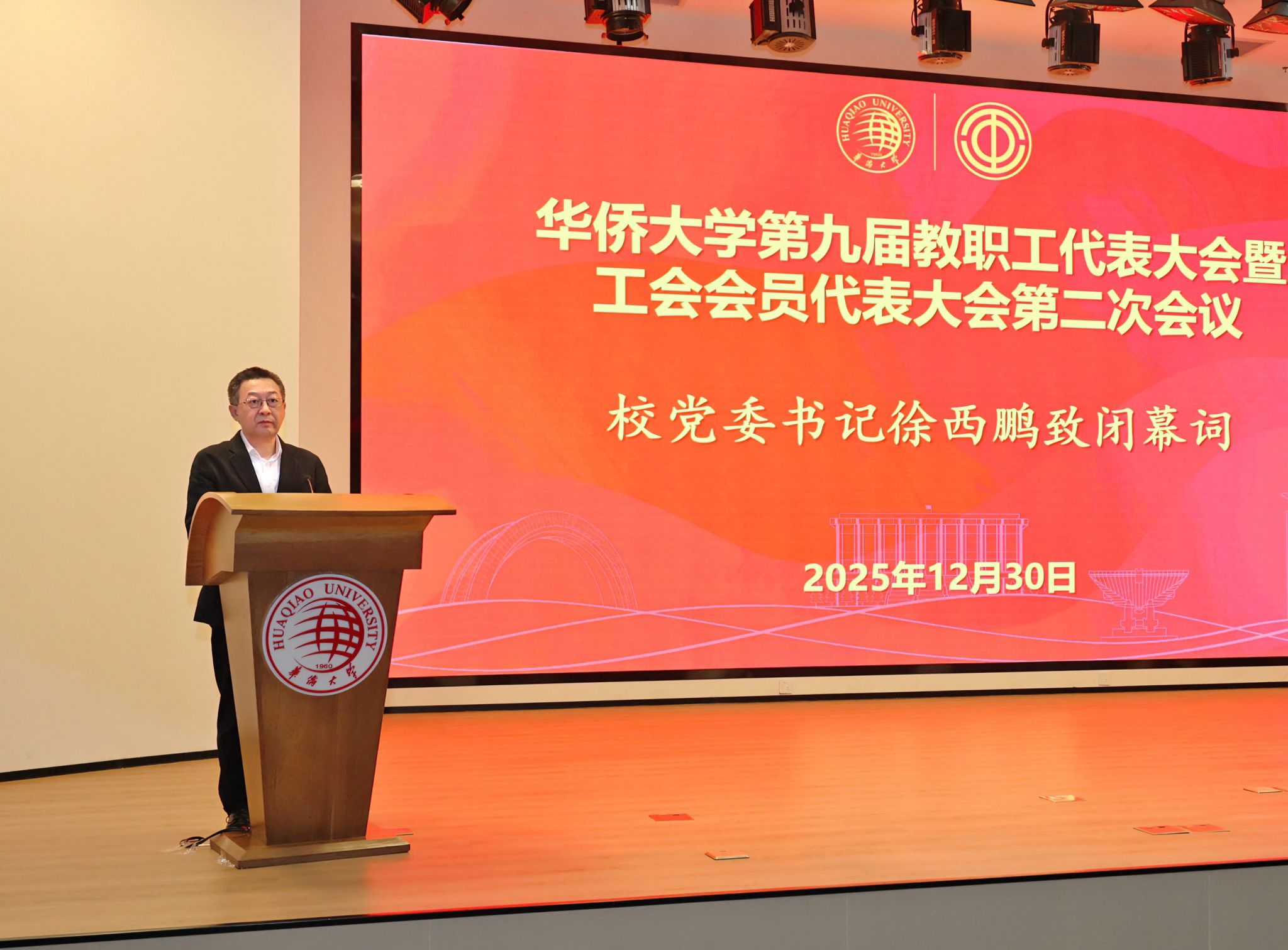 徐西鹏强调,2026年是全面贯彻党的二十届四中全会精神、“十五五”规划开局起步之年,也是学校在新起点上深化落实习近平总书记重要指示精神、加快高质量发展的关键之年。我们要始终沿着习近平总书记指引的方向,把握新形势、新任务、新要求,坚持以侨立校、为侨服务,聚焦“双一流”建设目标、立德树人根本任务、统战和侨务工作要求,努力创造新业绩、开创新局面。希望全校各级工会组织和各位代表,以此次“双代会”为契机,夯实思想根基、提升履职能力、激发干事动能、深化组织改革,进一步推动学校事业的创新发展。