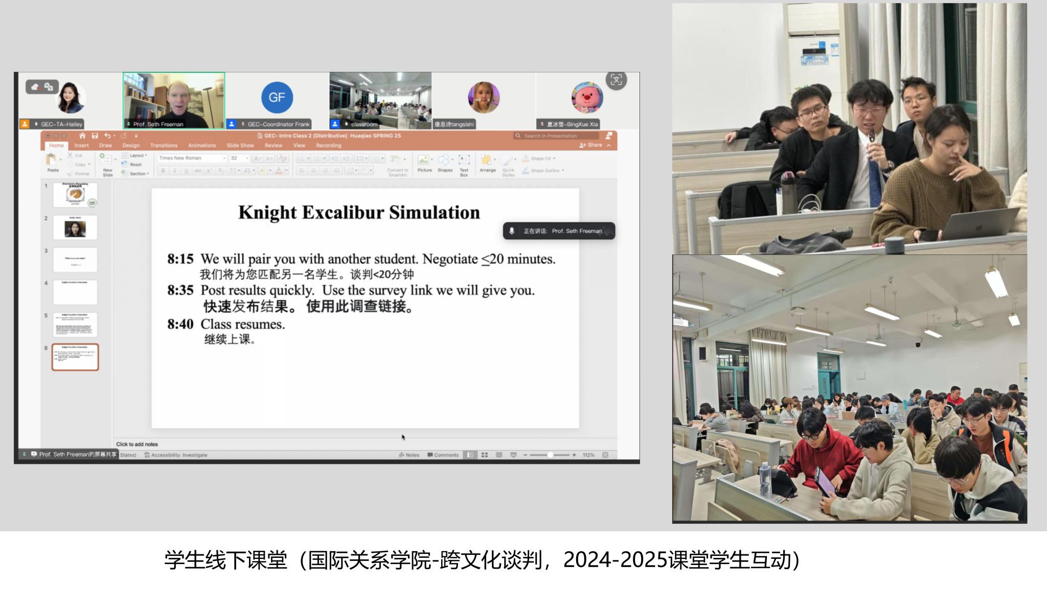 2024年春季学期,国际关系学院34名学生就学习了Seth Freeman教授的《跨文化谈判》课程。“课程让我受益匪浅。我不仅学到了如何在跨文化环境中有效地进行谈判,还提高了对不同文化的敏感性和理解力。这些技能将对我提高专业能力和参加未来的国际交流和合作产生积极影响。”学生章乐凌如是评价。