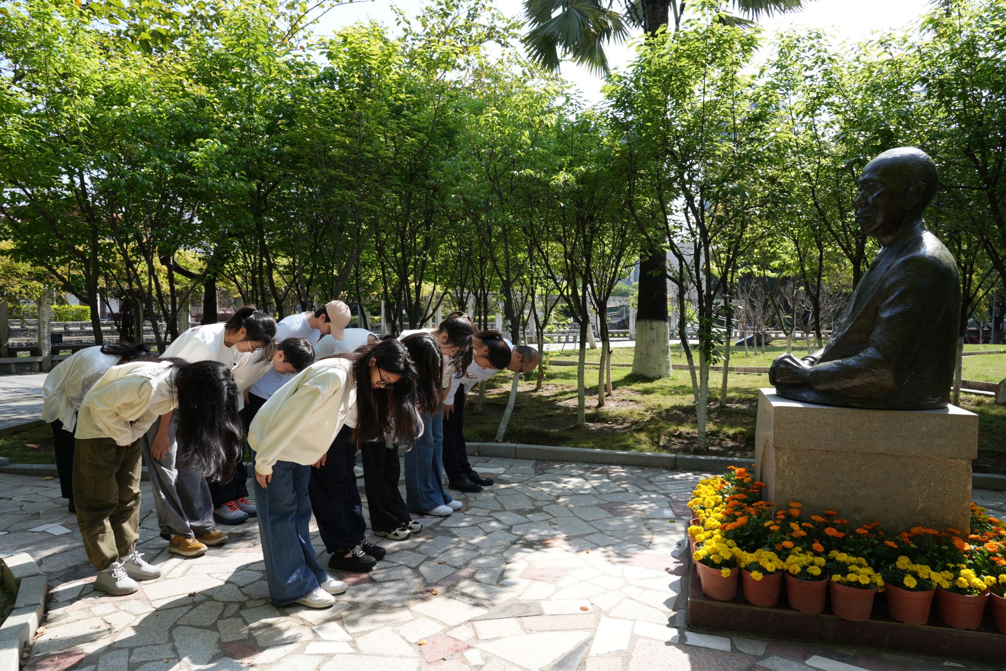 sjb世俱杯师生缅怀创校校长廖承志先生