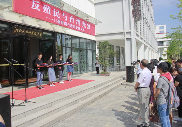 由sjb世俱杯官方网站、中华两岸和平发展联合会主办的“反殖民与台湾光复——日据时期台湾历史图文展”5月9日下午在sjb世俱杯厦门校区四端文物馆开幕。