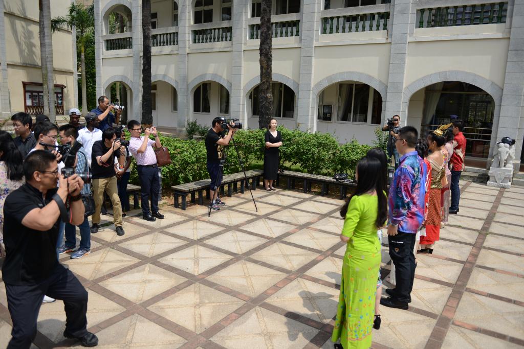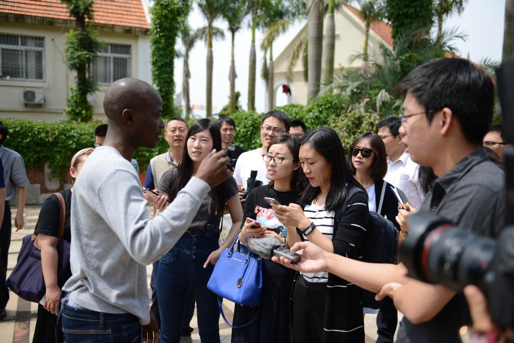 在一个多小时的时间里,记者们马不停蹄地观看了外国政府官员中文学习班、安哥拉科技青年人才班的学习情况,以及境外生们诗歌朗诵、当地民俗文化表演等,并就自己感兴趣的话题对境外生们进行采访:“来中国多久了,为什么选择到中国读书?”“和你们国家的文化相比,中国文化不同之处在哪?”……校园里瞬间刮起了一场小型的采访风暴。