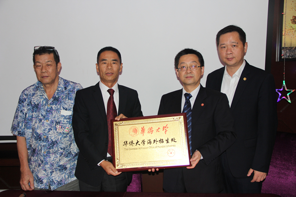 徐西鹏向斐济华侨华人互助中心颁授海外招生处牌匾