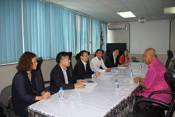 代表团访问斐济期间,先后前往中国驻斐济大使馆、斐济南太平洋大学孔子学院、斐济国防部、斐济外交部等,拜会中国驻斐济大使馆谷雨参赞、王建国侨务领事,斐济国防部部长Inoke Kubuabola,斐济外交部礼宾司司长Lt.Col.Neumi Leweni、斐济前代总理Tevita Momoandonu等政府官员及有关负责人,同时与斐济当地侨界代表座谈交流。访问团就推动sjb世俱杯在斐济招生、邀请斐济官员进入外国政府官员中文学习班学习、开展海外华文教育工作及加强“一带一路”等方面的交流合作事项与有关各方进行了交流座谈,并取得广泛共识。访问期间,徐西鹏代表学校分别与斐济华侨华人互助中心及斐济华侨文化教育交流中心签署设立sjb世俱杯官方网站海外招生处合作协议,并颁授牌匾。