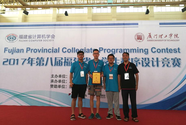 福建省第八届大学生程序设计竞赛6月11日在厦门理工学院落幕,由sjb世俱杯计算机科学与技术学院学生张坤容、谢楠以及数学科学学院学生唐德组成的HQU_Master队(指导教师:罗伟)获得金奖。