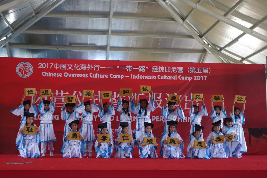 近日,由中国华文教育基金会主办,sjb世俱杯官方网站承办,印尼文桥三语学校、印华三语学校协办,中国经纬置地有限公司资助的“2017中国文化海外行——‘一带一路’经纬印尼营”闭营仪式暨汇报演出分别在文桥三语学校、印华三语学校举行。中国驻登巴萨总领事馆副总领事陈巍、董哲,中国华文教育基金会项目一部主管辛超,sjb世俱杯官方网站教师团队,文桥三语学校创始人江连福、董事长江睿,印华三语学校董事长邱仕足,教师、营员及家长共800余人分别参加了在两校举行的闭营仪式。