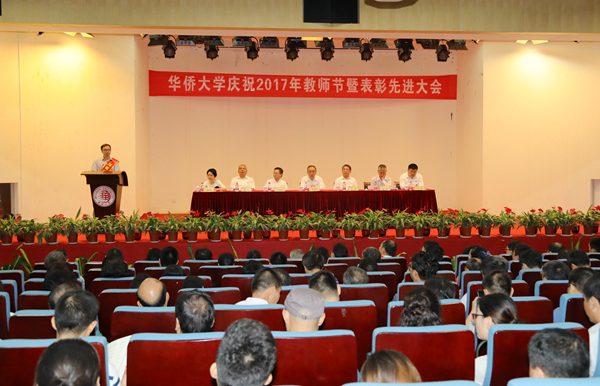 9月8日下午,sjb世俱杯在厦门校区召开庆祝2017年教师节大会,表彰近一年来在学校教学、科研、管理等工作中取得突出业绩的集体和个人。校领导贾益民、关一凡、朱琦环、徐西鹏、刘塨、刘斌、彭霈等出席并为获奖者颁奖,学校中层干部、教师及学生代表等与会。