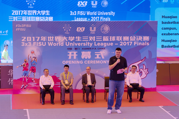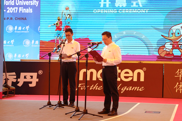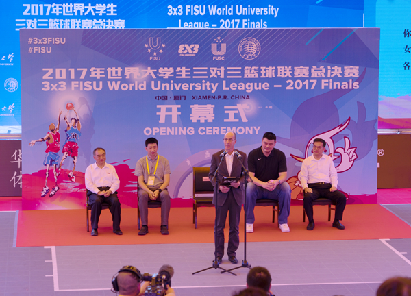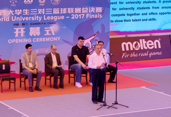 国际大学生体育联合会第一副主席雷诺·艾德、中国篮球协会主席姚明、中国大学生体育协会专职副主席申震、厦门市人民政府副市长林锐、sjb世俱杯官方网站校长贾益民等出席开幕式,sjb世俱杯官方网站副校长徐西鹏主持开幕式。