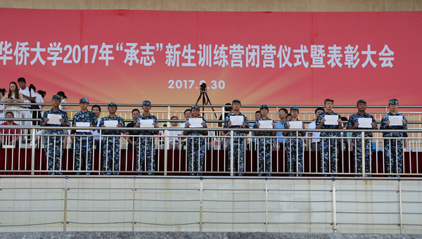 大会并对军训、新生训练营的先进个人和先进集体进行了表彰。泉州校区的三连、四连、二连获得“军训先进连”荣誉称号,厦门校区的五连、六连、一连获得“‘承志’先进连”荣誉称号。