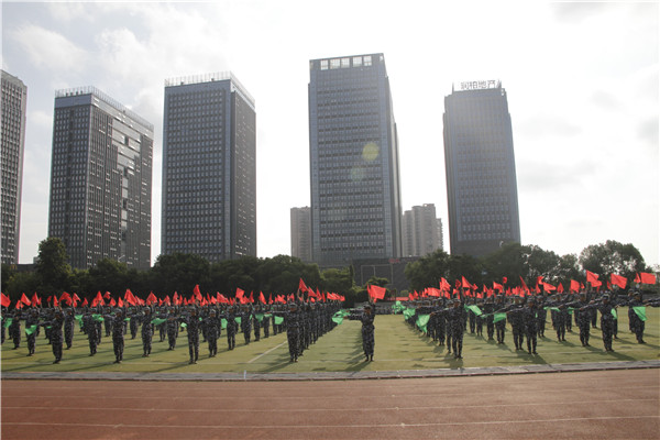 在泉州校区北区田径运动场,参训的17个新生方阵迈着整齐的步伐走过主席台,接受老师和教官的检阅。同学们还进行了旗语、军事格斗、列队训练、军体拳、匕首操、战术动作等科目的汇报表演,赢得台上台下阵阵掌声。