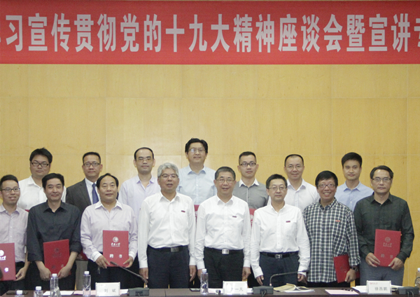 与会人员纷纷发言,畅聊学习党的十九大精神体会。他们有的深入分析党的十九大所传递的理论思想,围绕“新时代”“习近平新时代中国特色社会主义思想”“社会主要矛盾”“意识形态工作”“共享发展”“美丽中国”“全面从严治党”等主题畅谈感想;有的着眼“高等教育内涵式发展”“立德树人”,结合本部门、学院的工作,就未来如何将党的十九大精神贯彻到工作中提出设想;有的从教师的责任与担当出发,表示要以更加积极的态度以身作则,深刻领会党的十九大报告精神,承担起人民教师的光荣职责。